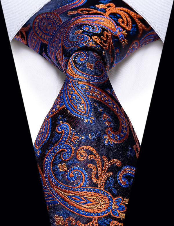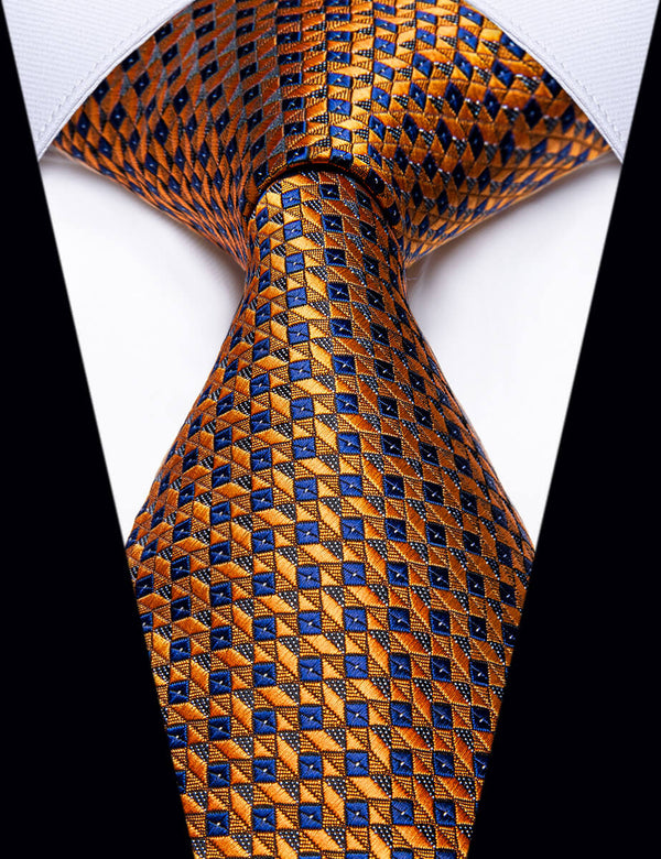 YourTies Orange Tie Jacquard Men's Novelty Formal Regular Necktie Set