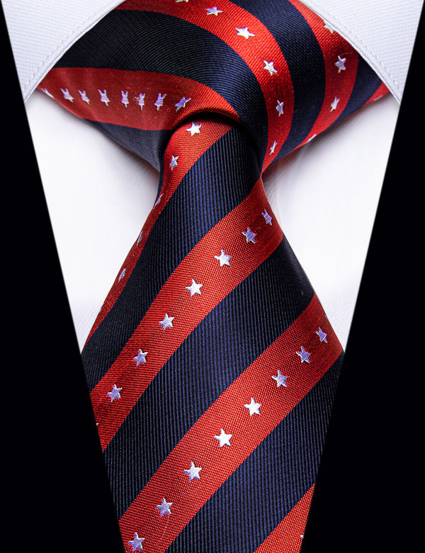 YourTies Striped Ties Classic Red Blue Star Men's Silk Novelty Necktie