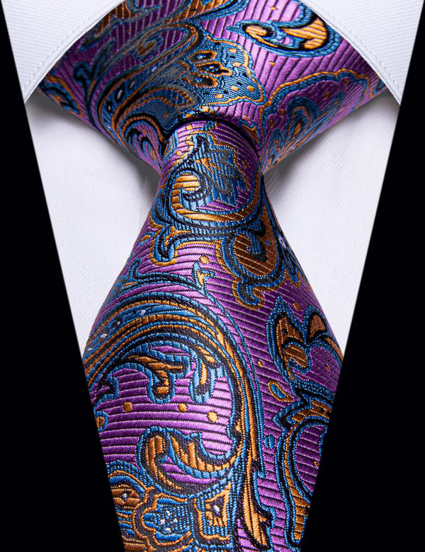 YourTies Purple Paisley Tie Mixing Color Blue Orange Mens Silk Necktie