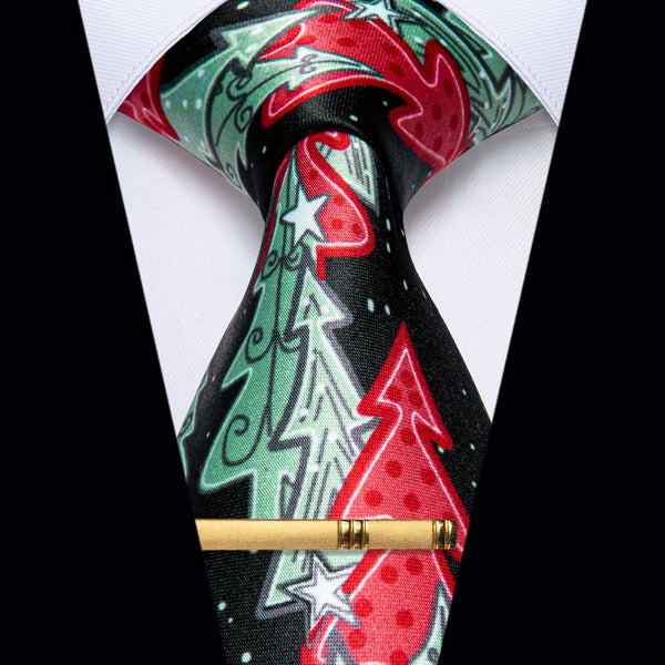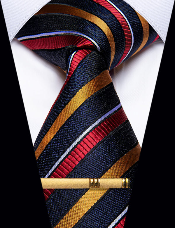 YourTies Dark Blue Golden Red Striped Silk Necktie with Golden Tie Clip