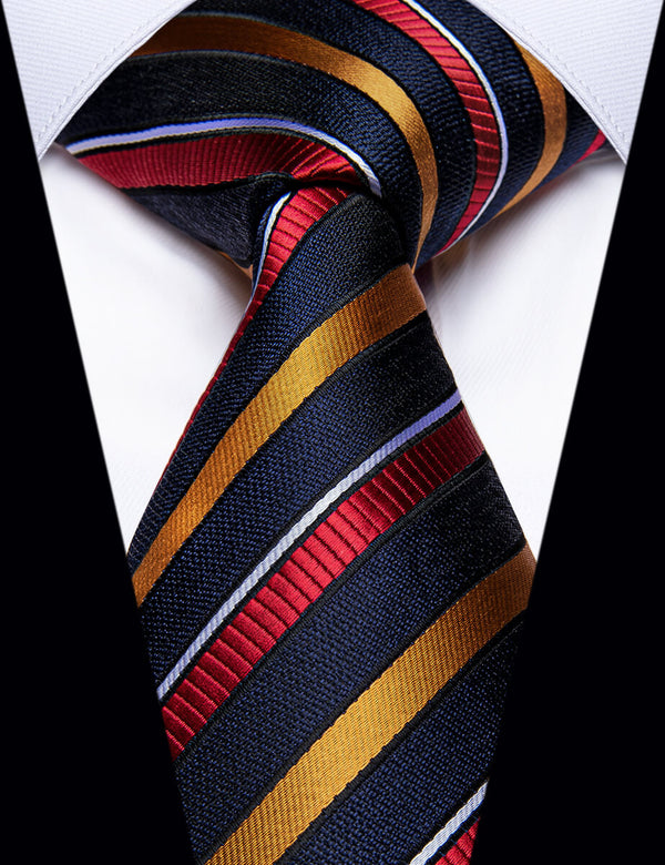 YourTies Striped Necktie Men Dark Blue Golden Red Silk Necktie