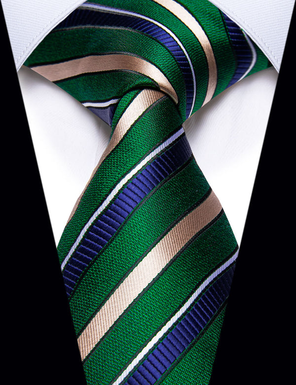 YourTies Green Champagne Blue Striped Silk Wedding Necktie for Men