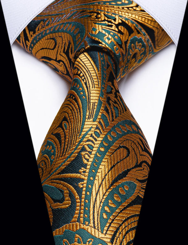 YourTies Mens Wedding Ties Luxury Golden Green Paisley Silk Necktie