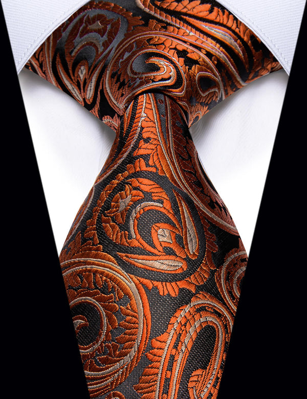 YourTies Burnt Orange Paisley Tie Brown Bronze Paisley Silk Necktie