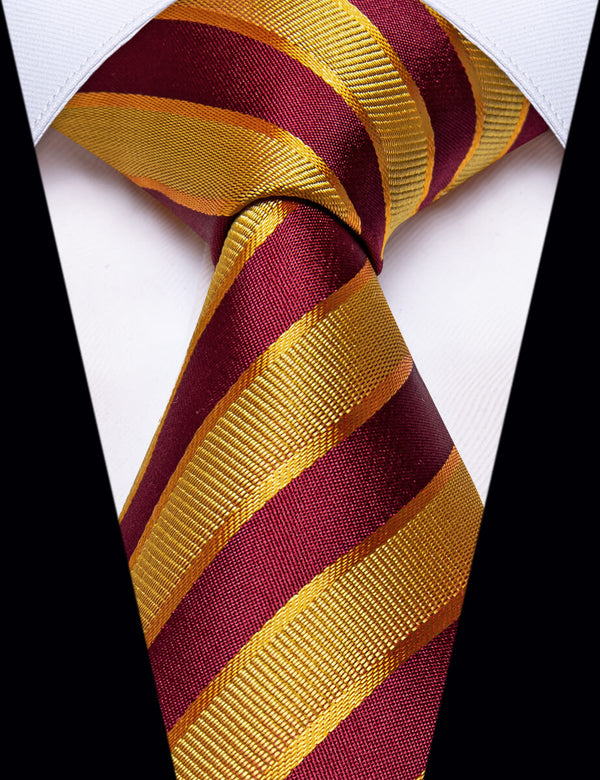 YourTies Mens Party Tie Gloden Red Striped Men's Silk Necktie