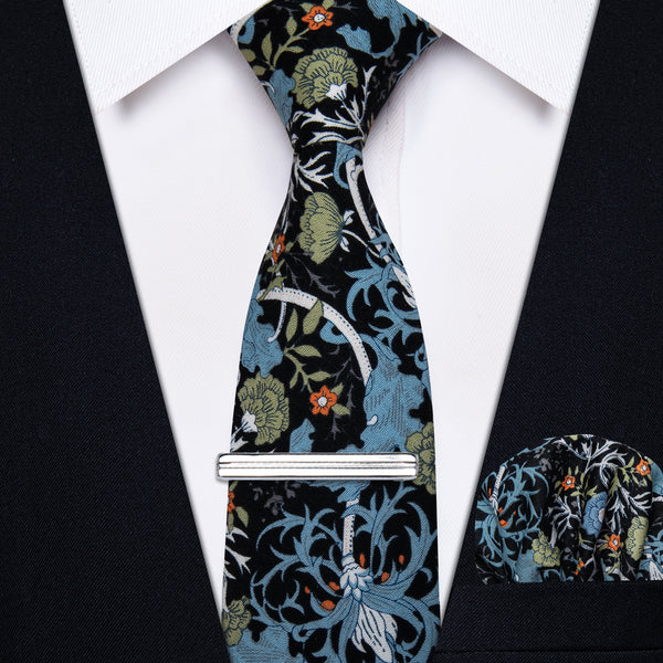 YourTies Teal Blue Green Floral Men Vest Tie Handkerchief Cufflinks Set