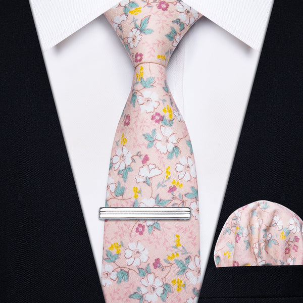 YourTies Noble Navy Blue Champagne Floral Silk Necktie