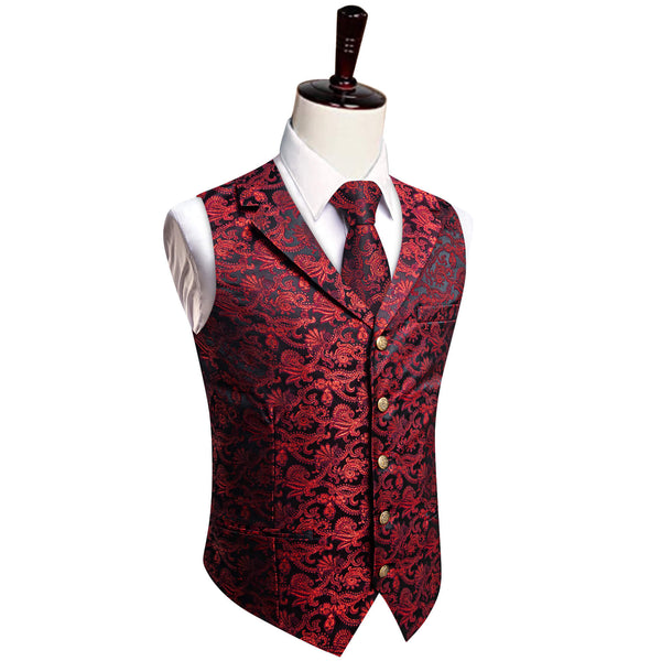YourTies Floral Waistcoat Black Red Floral Silk Men's Vest Necktie Set