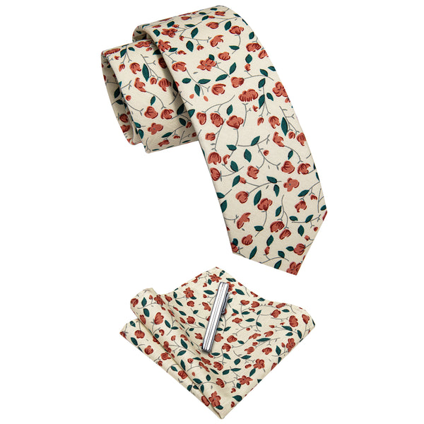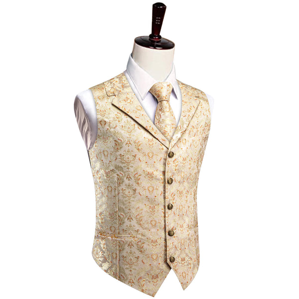 YourTies Waistcoat Beige Yellow Orange Floral Silk Men's Vest Tie Set