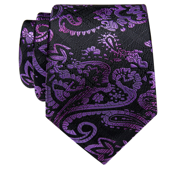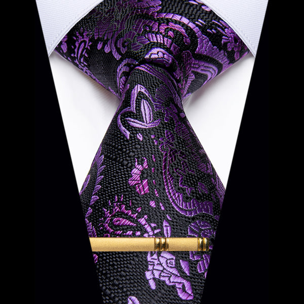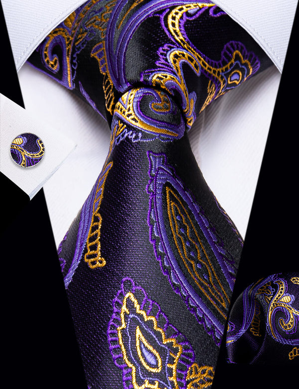 YourTies Purple Gold Paisley Men's Wedding Necktie Pocket Square Cufflinks Set