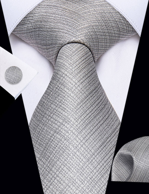 YourTies Grey Tie Plaid Men's Necktie Pocket Square Cufflinks Set