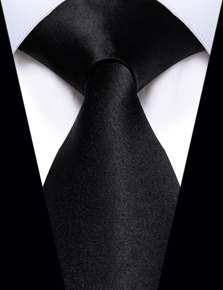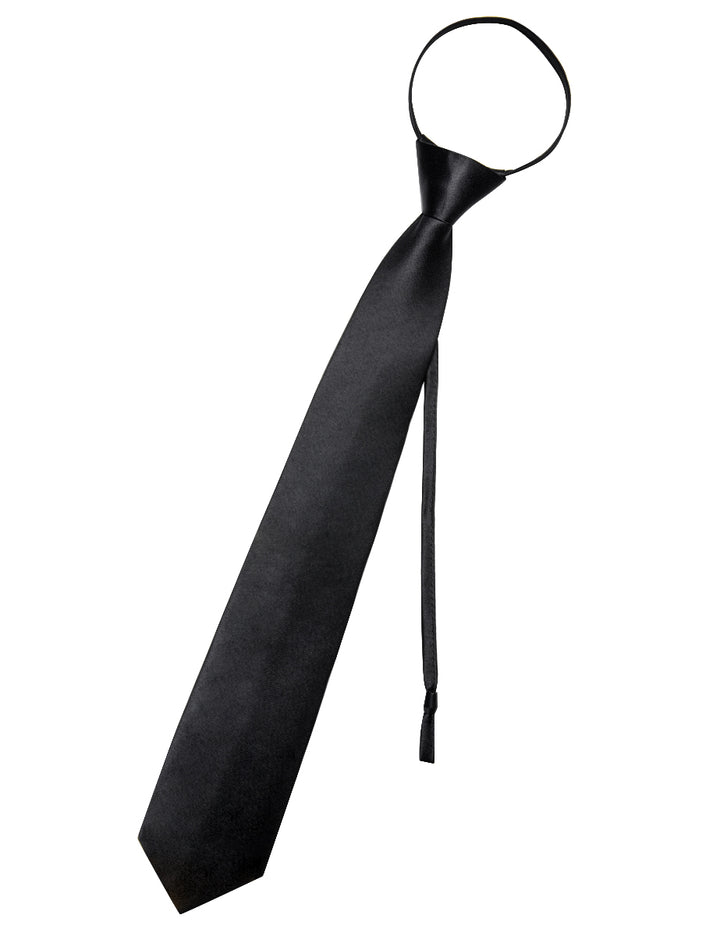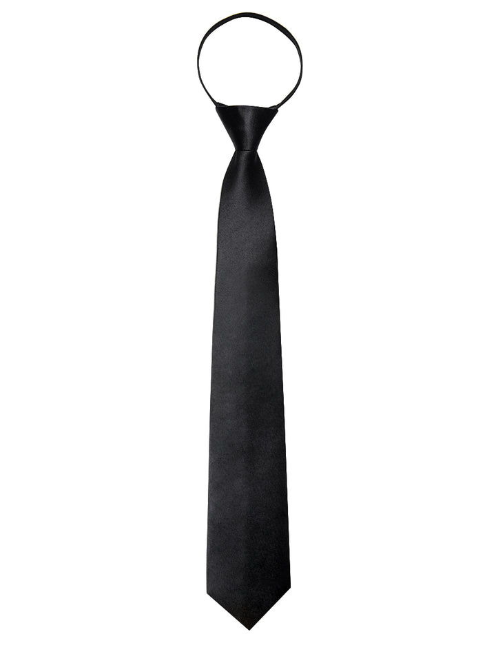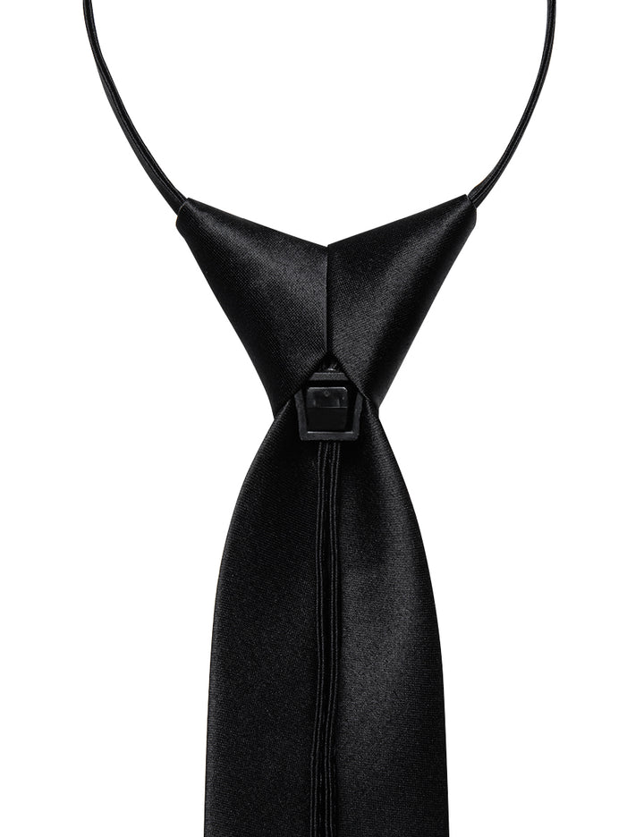 YourTies Black Solid Silk Adjustable Zipper Pre-tied Necktie Hanky Set