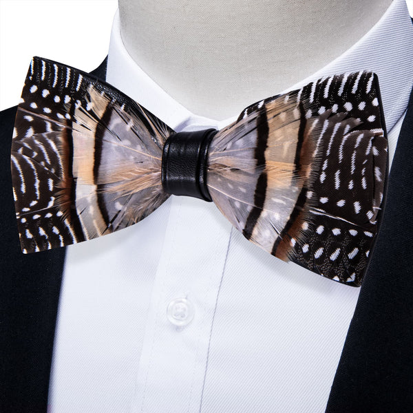 YourTies Black Brown White Novelty Pattern Mens Pre-tied Bowtie Feather Bow Ties