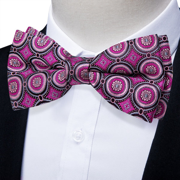 YourTies Mens Bowtie Deep Pink Geometry Silk Bowtie Pre-tied Bowtie