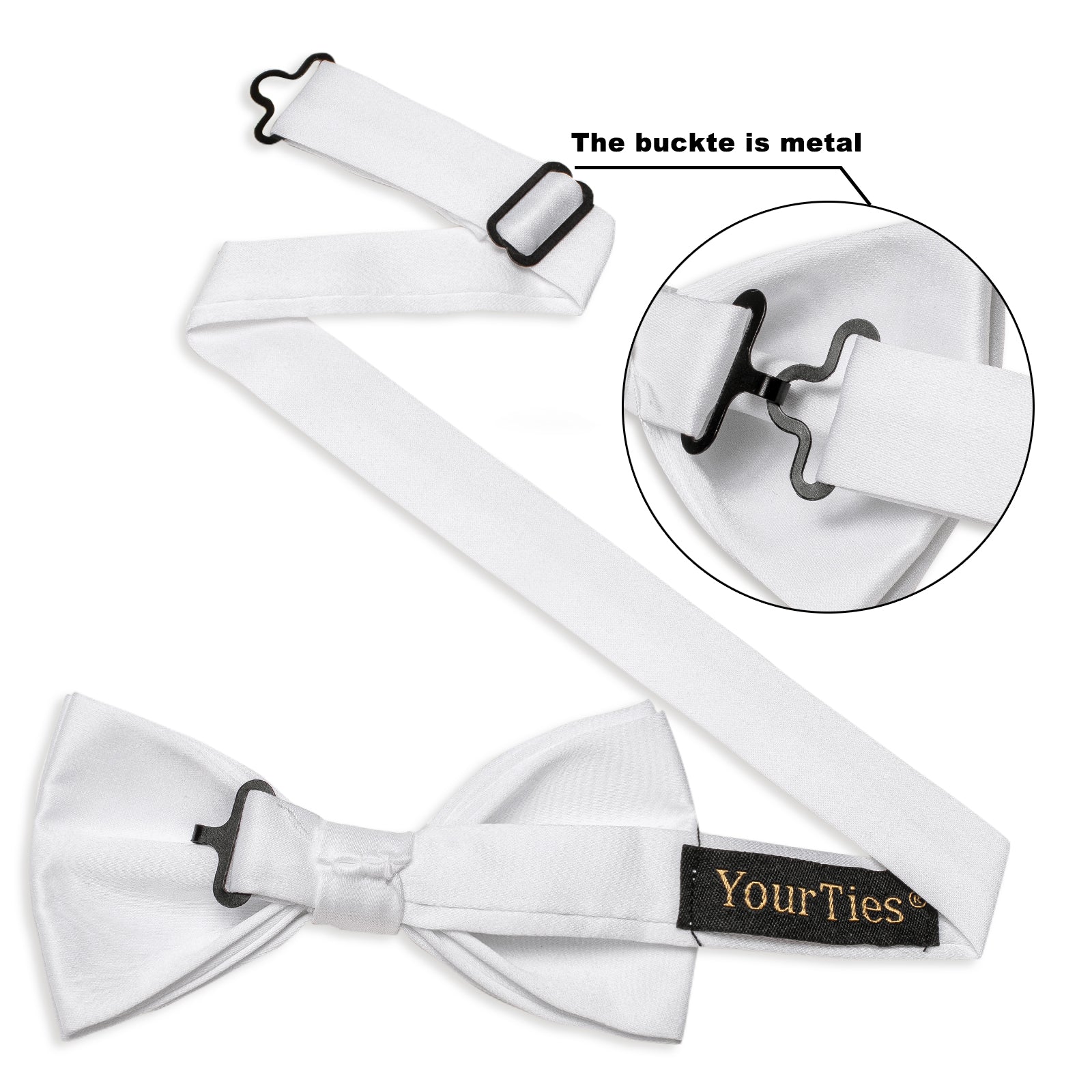 YourTies Mens Wedding Neck Tie White Solid Pre-tied Bowtie