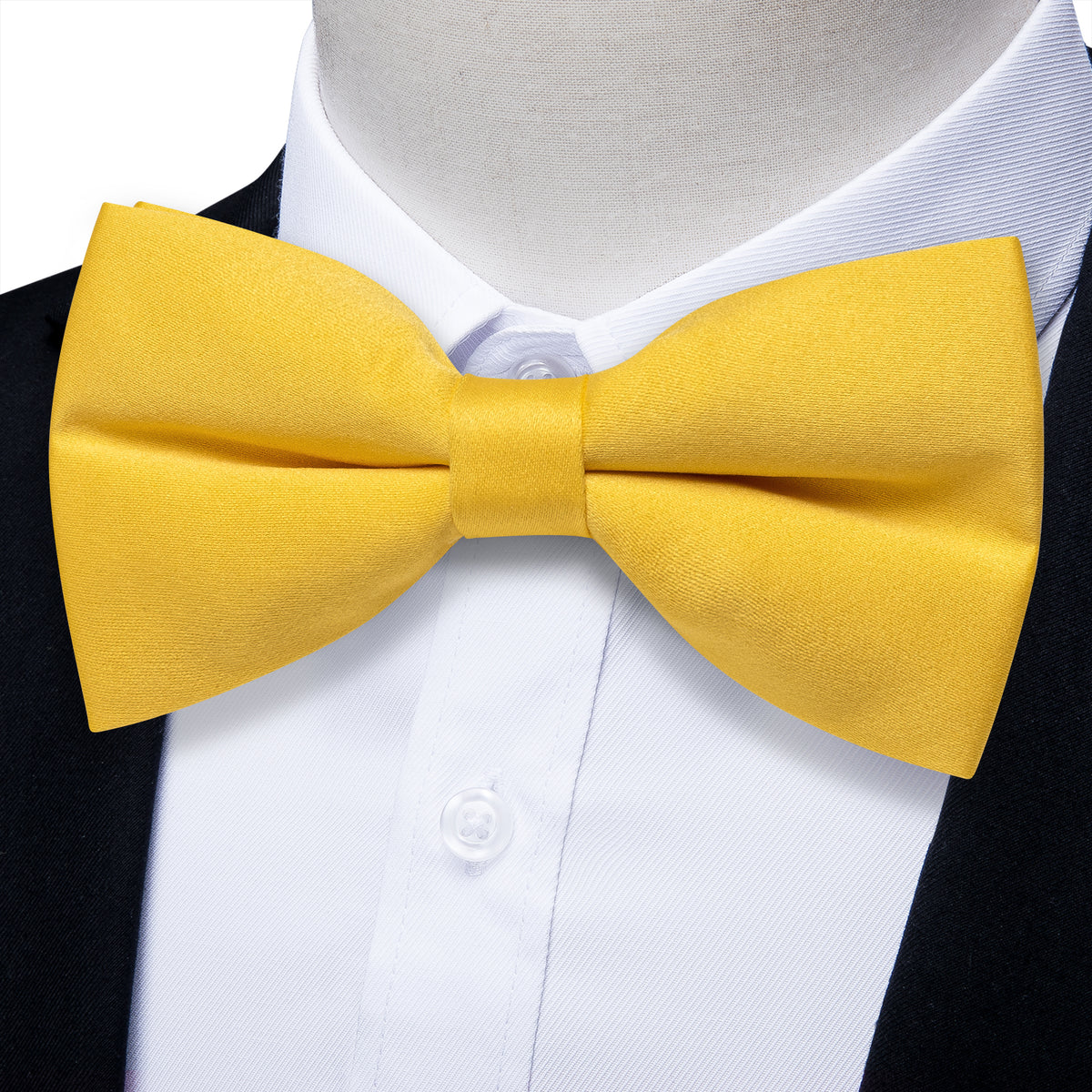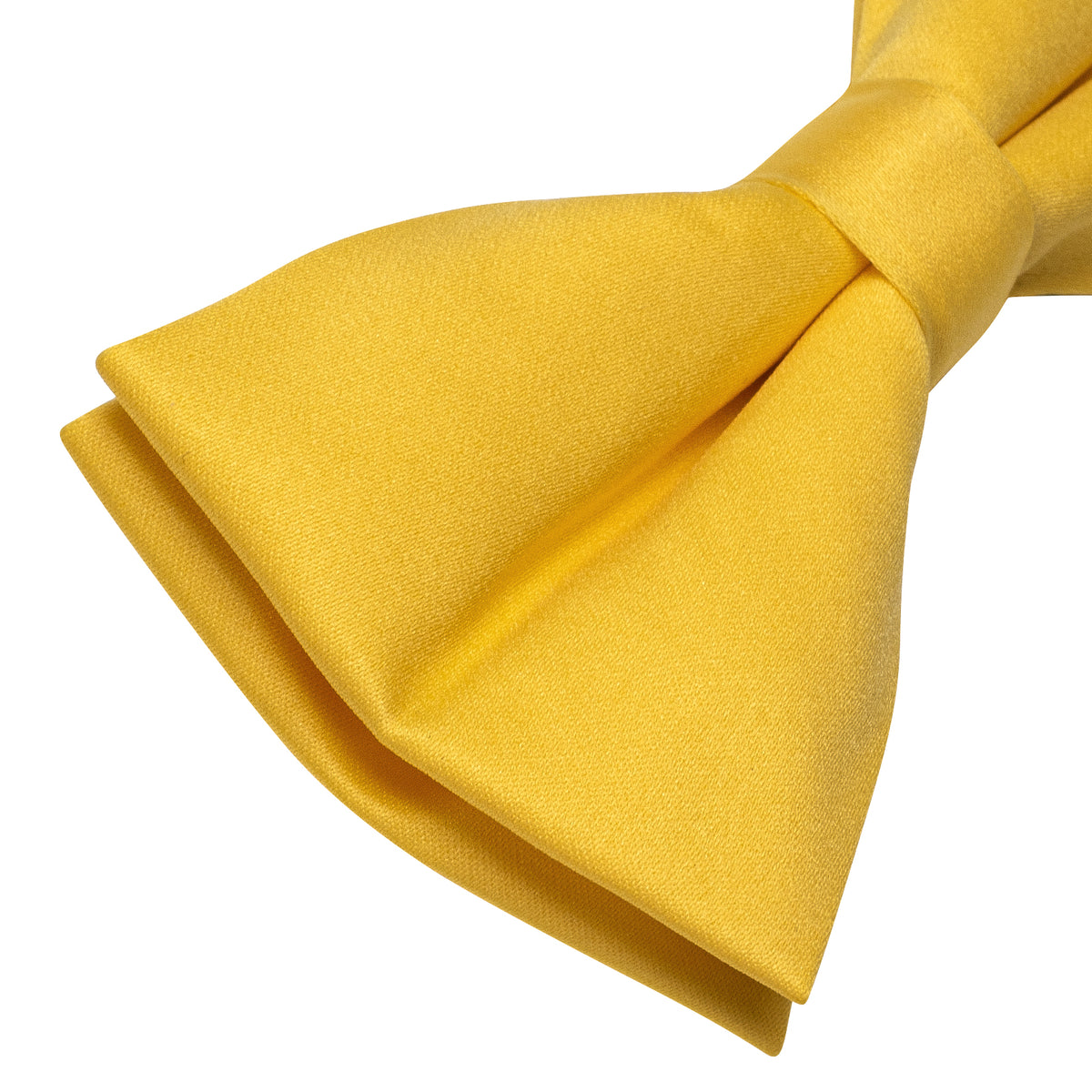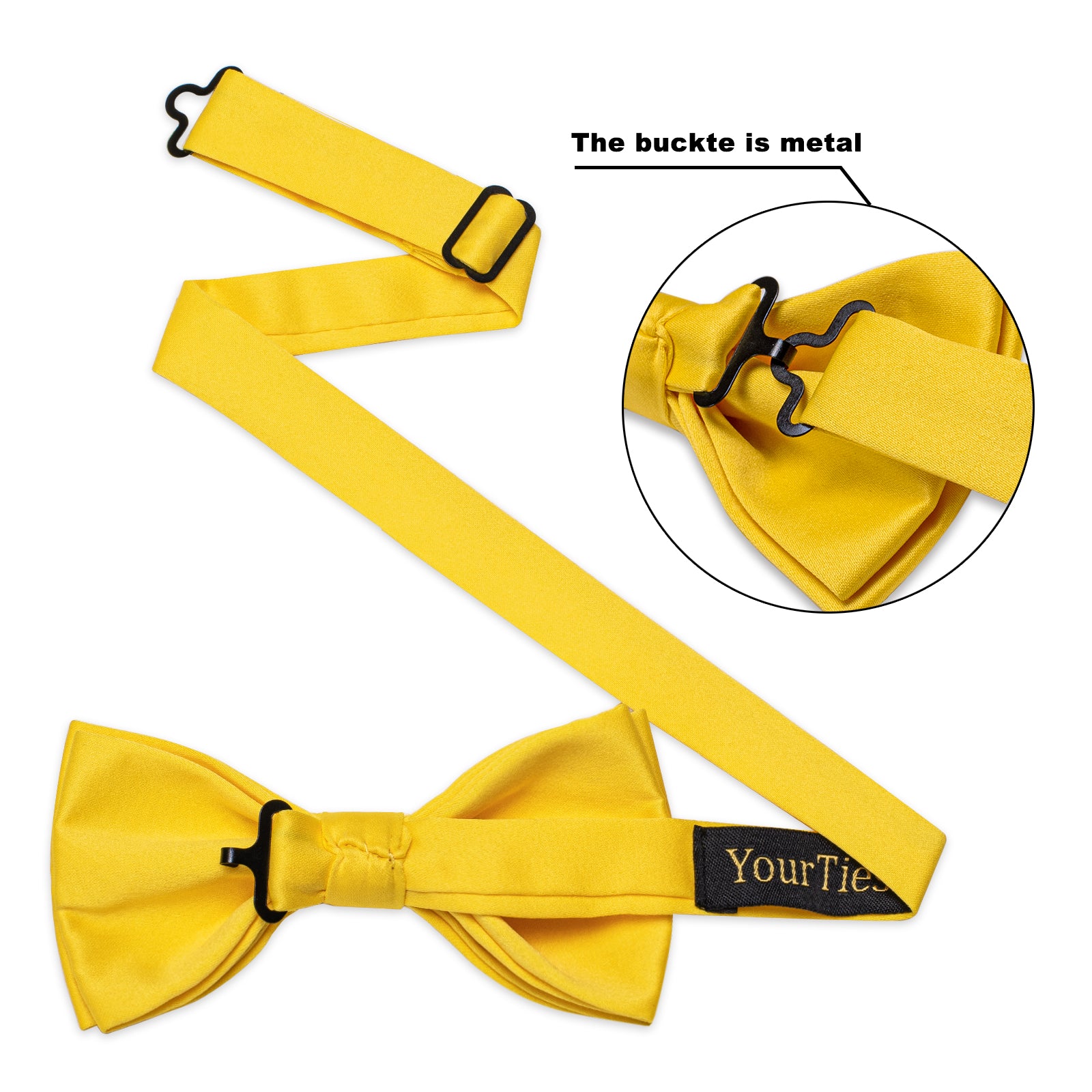 YourTies Light Yellow Neck Tie for Men Solid Wedding Pre-tied Bowtie