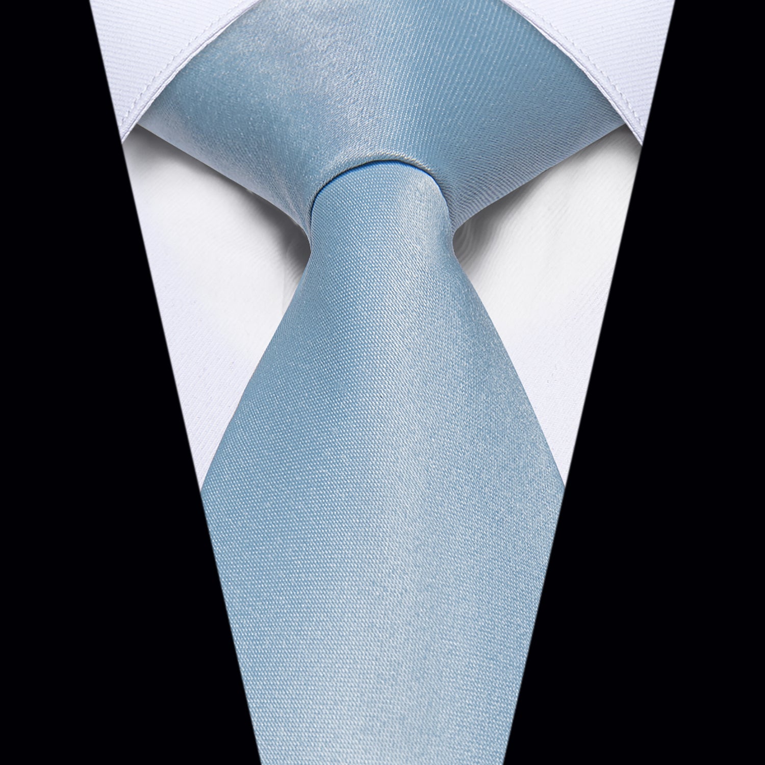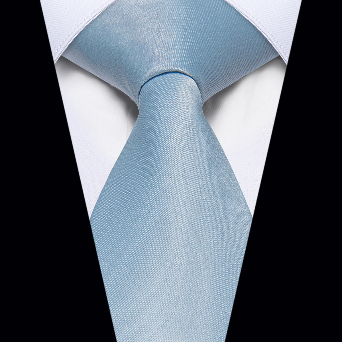 YourTies Baby Blue Tie Solid Silk Pre-tied Necktie Pocket Square Set