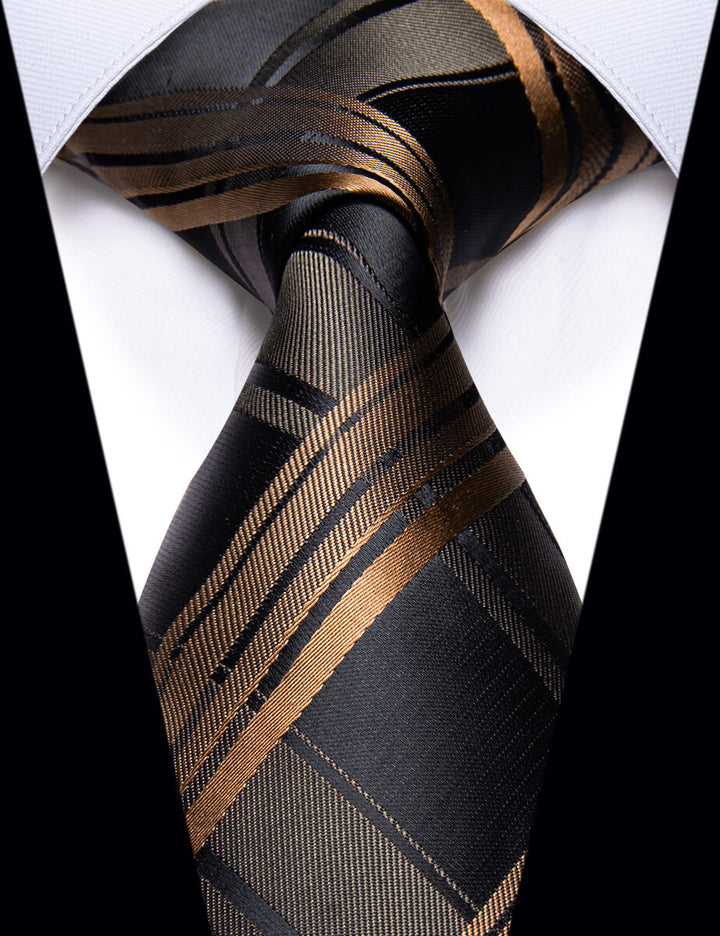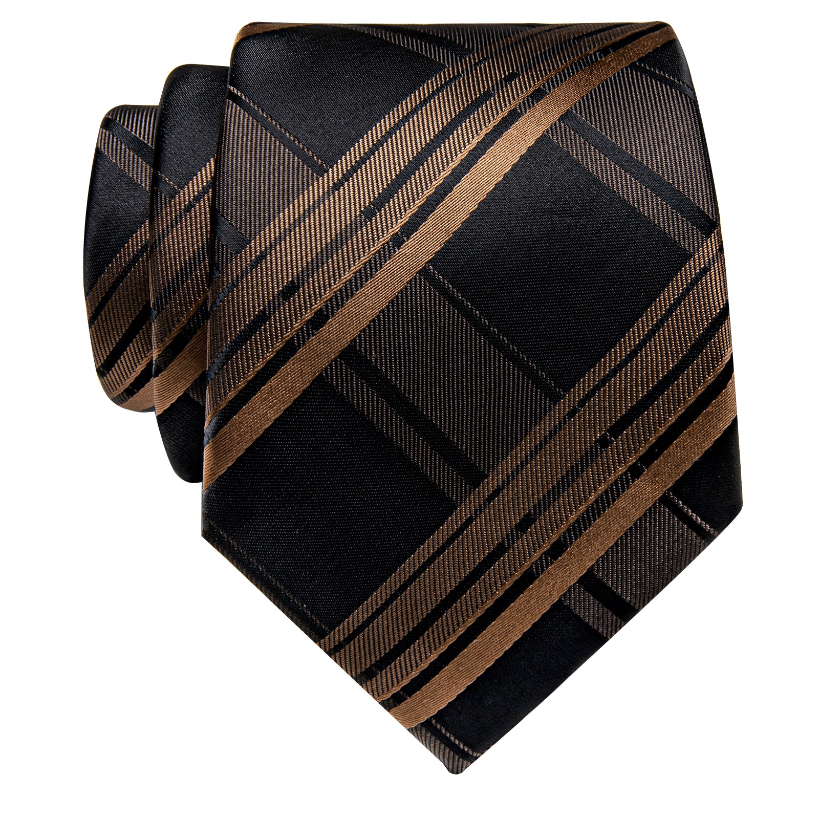 YourTies Brown Checkered Men's Black Brown Plaid Silk Necktie