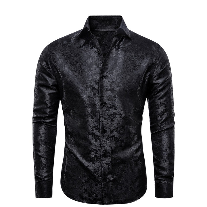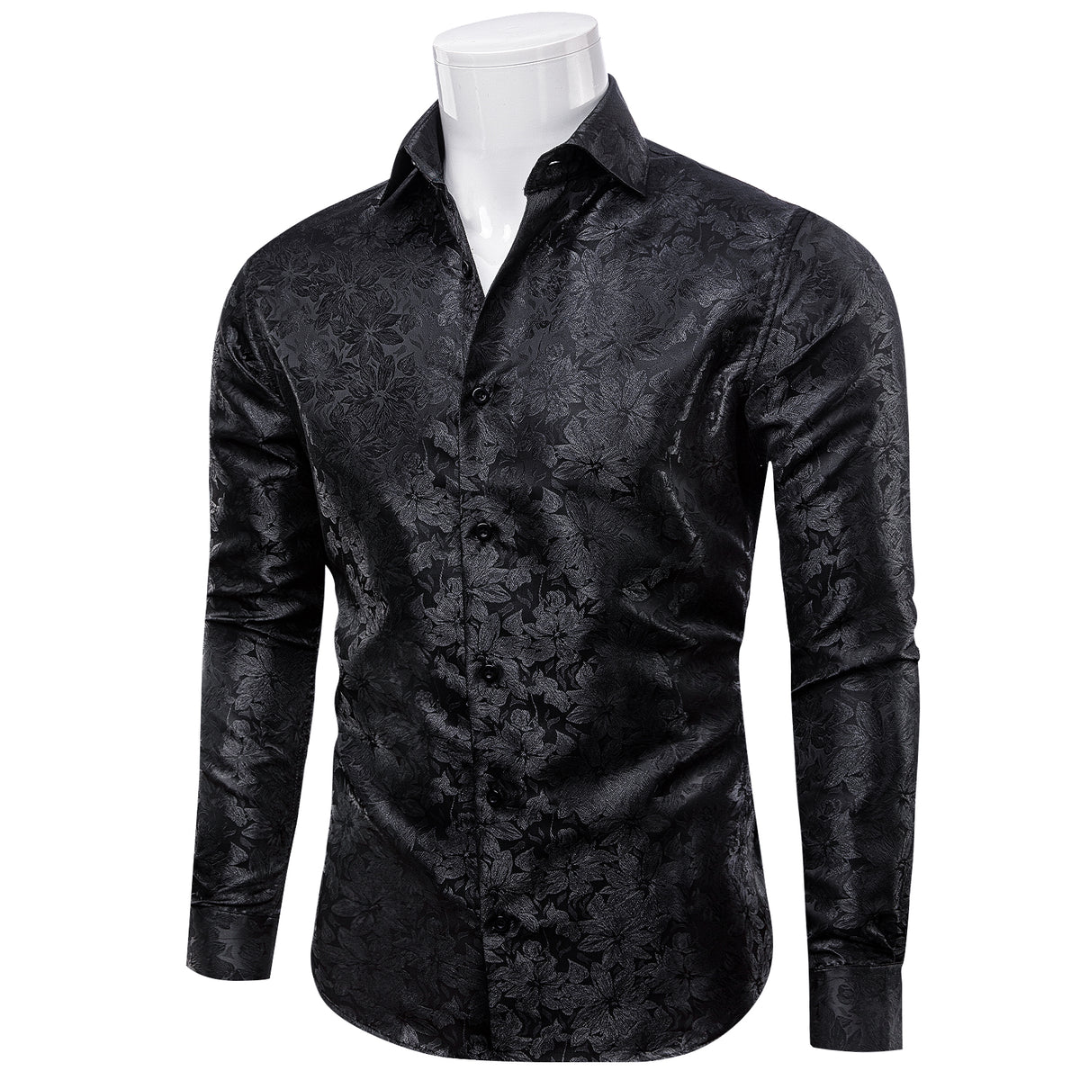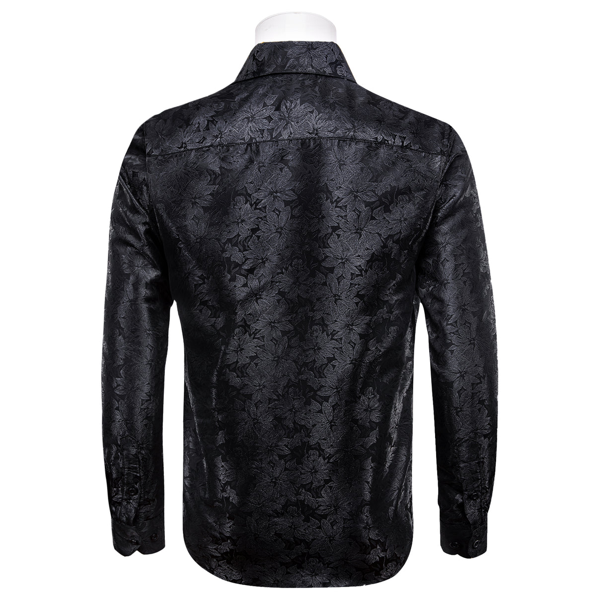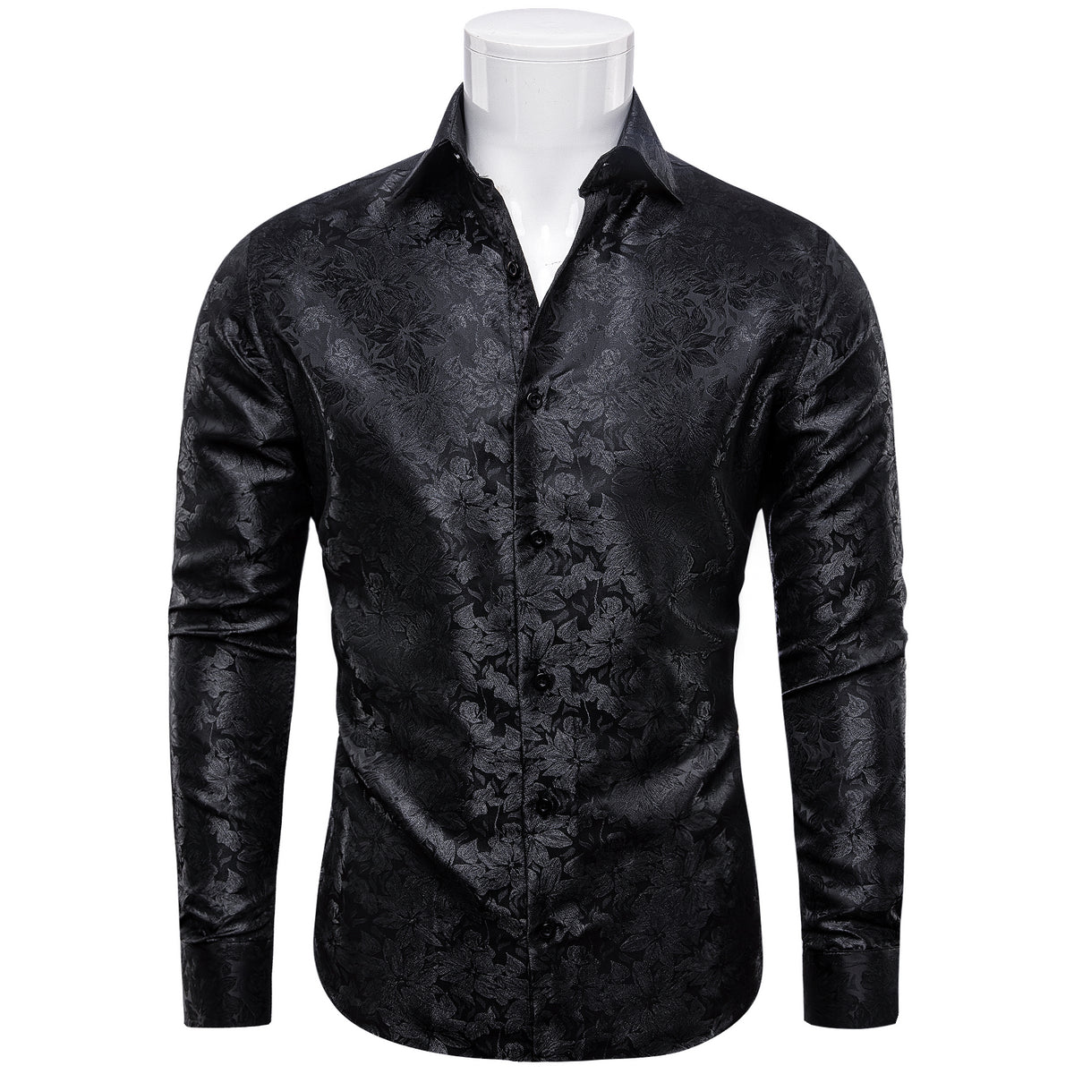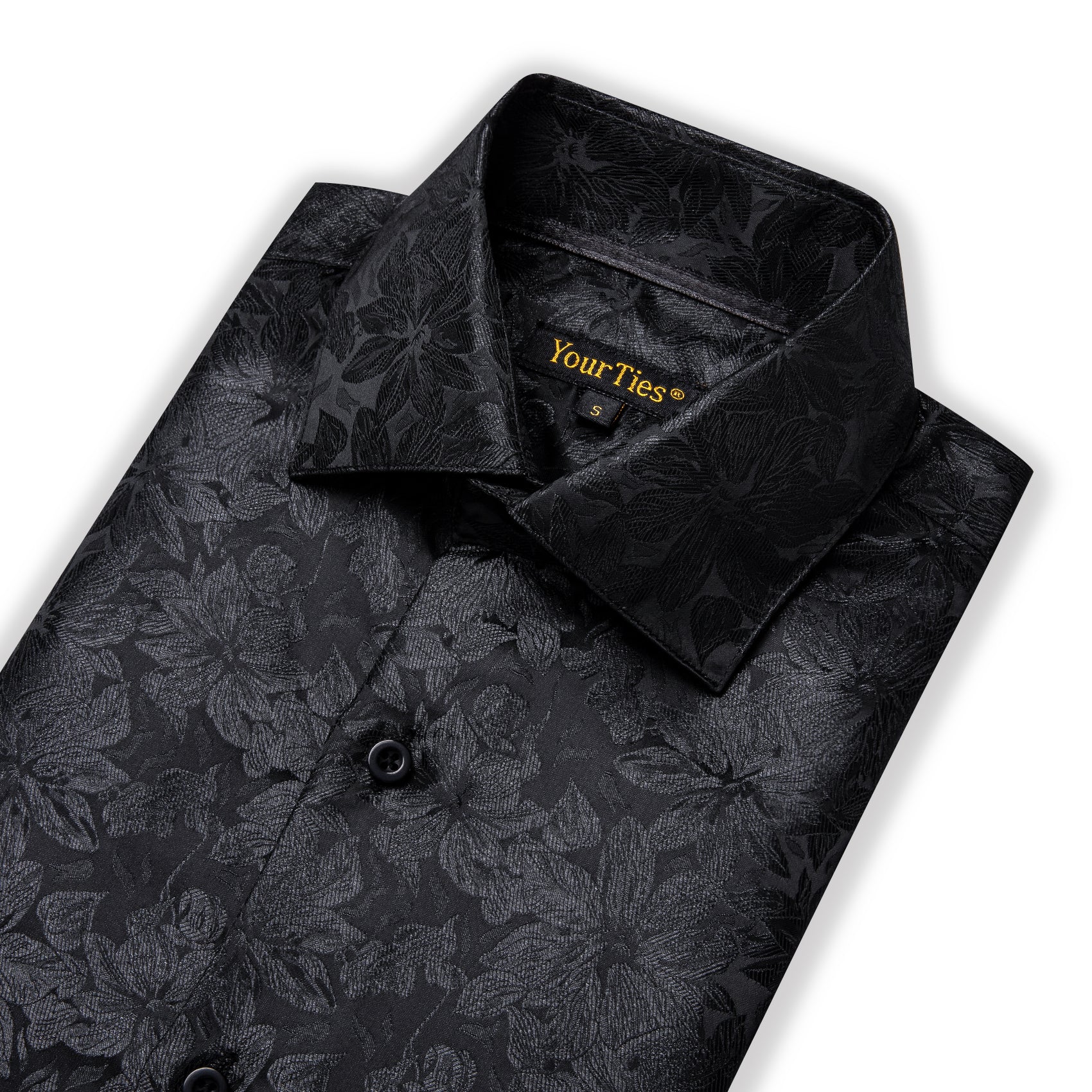 YourTies Black Shirts Floral Men's Windsor Collar Long Sleeve Shirt