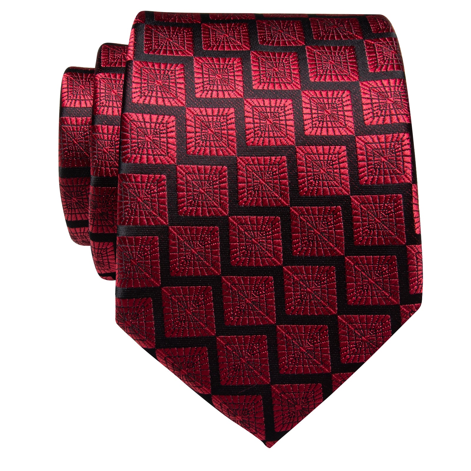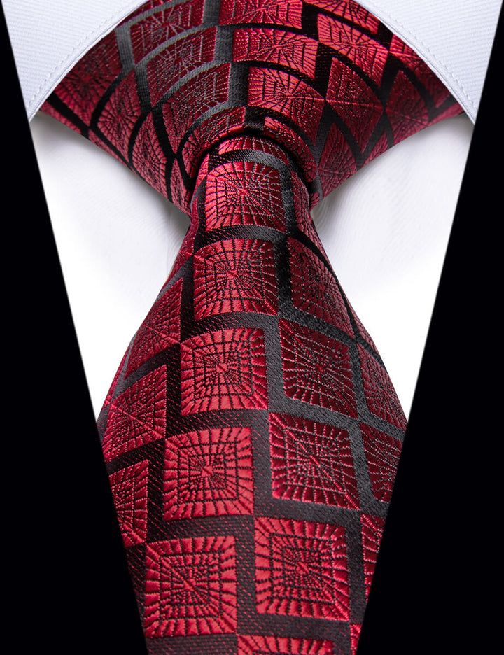 YourTies Burgundy Tie for Men Black Red Plaid Novelty Silk Necktie