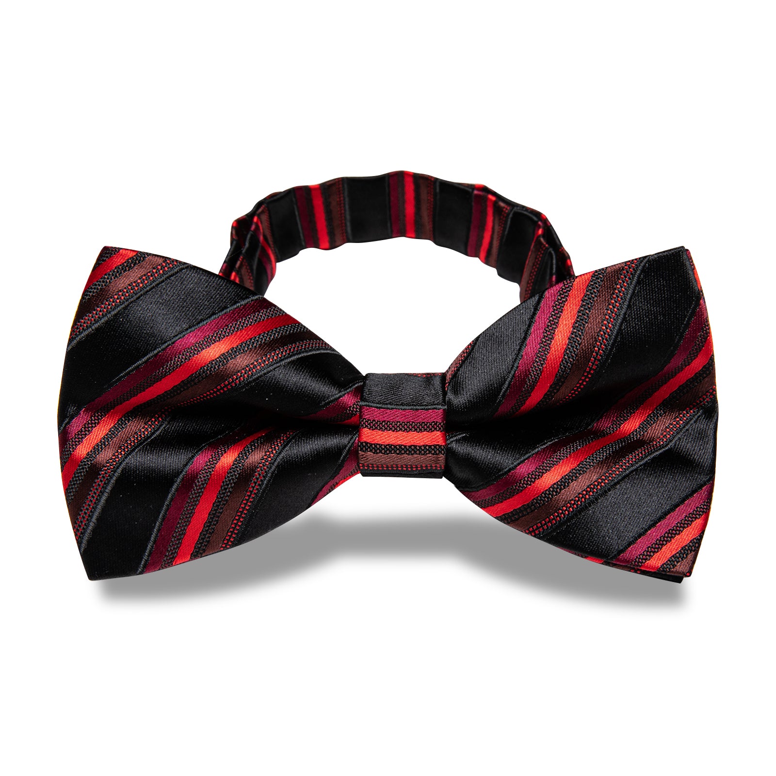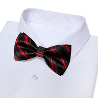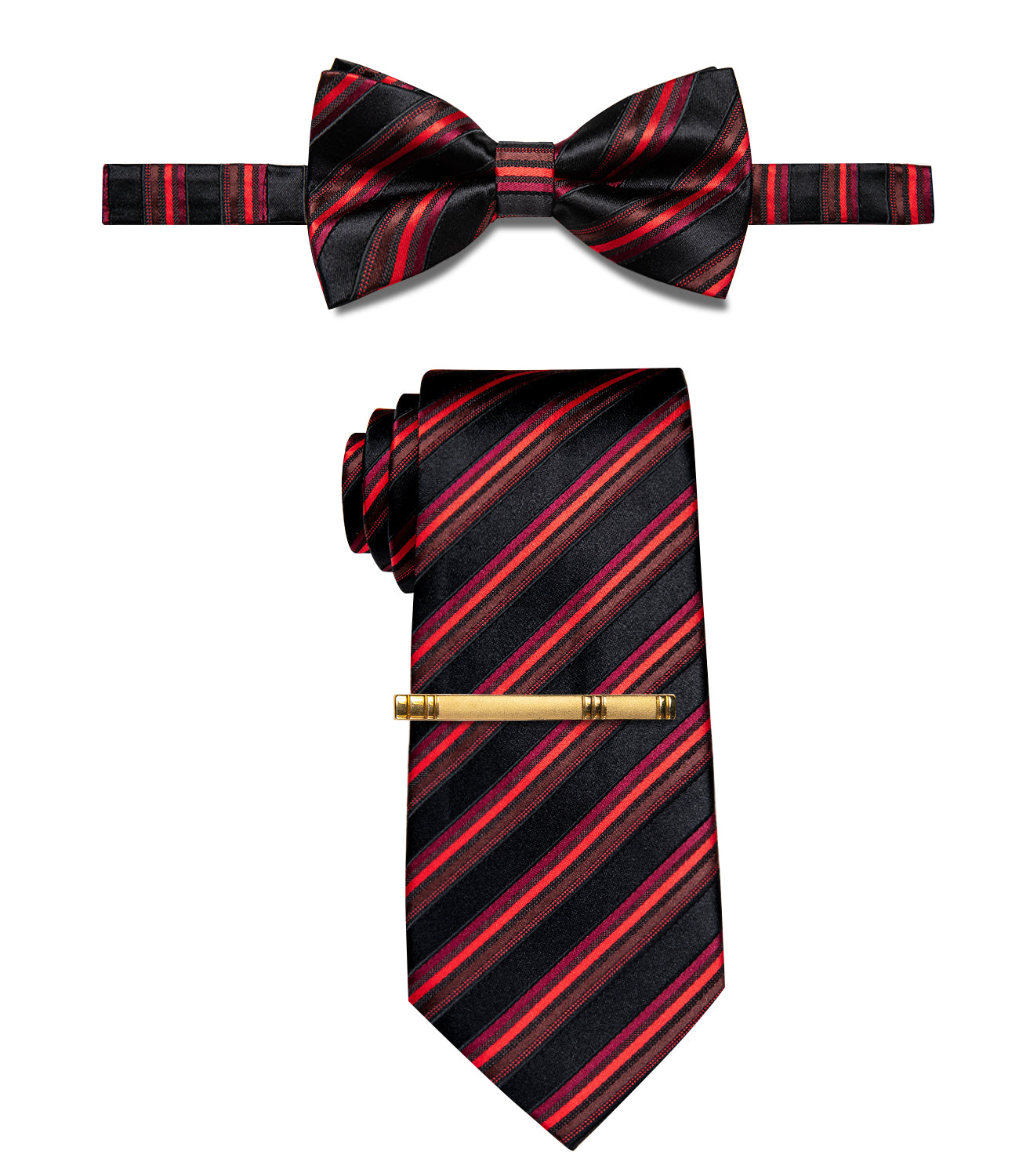 YourTies Black Bow Tie Red Stripes Pre-tied Bowtie Necktie Clip 3PCS Set