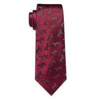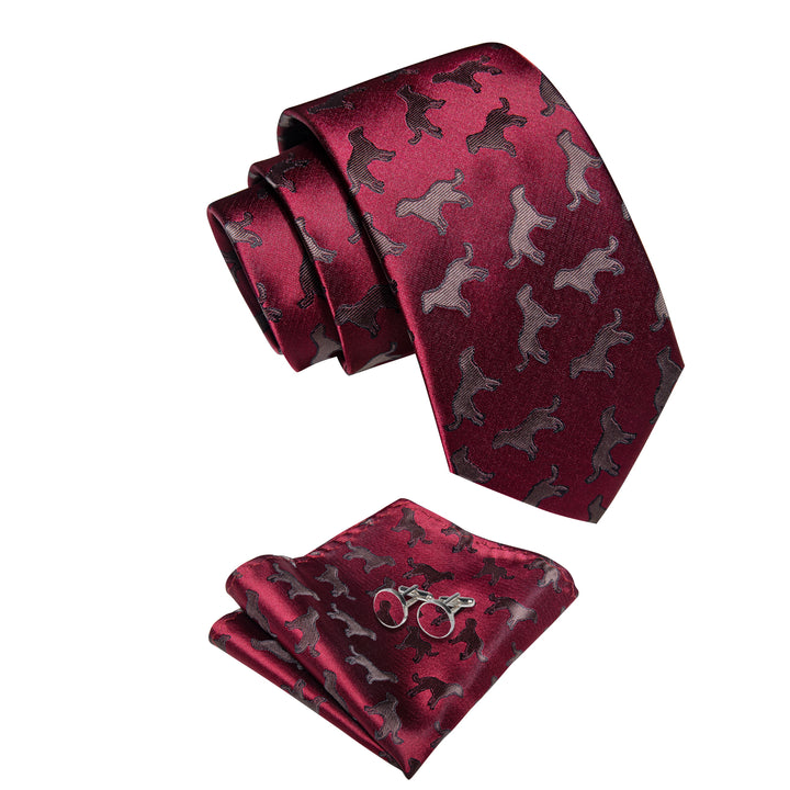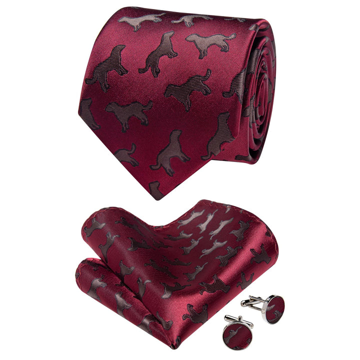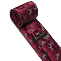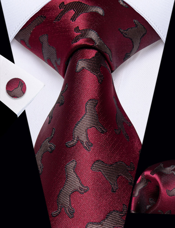 YourTies Burgundy Brown Jacquard Necktie Pocket Square Cufflinks Set