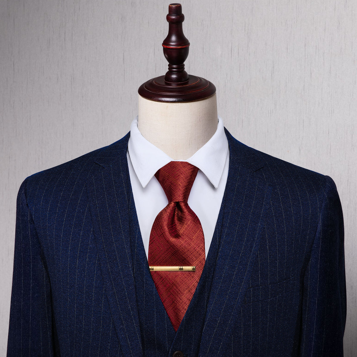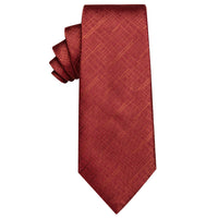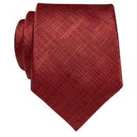 YourTies Classic Dark Red Plaid Silk Necktie with Golden Tie Clip