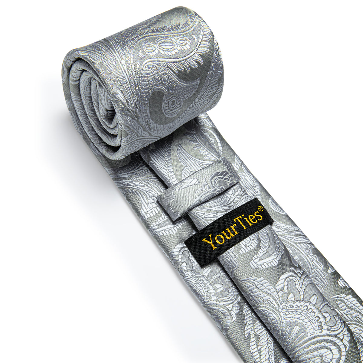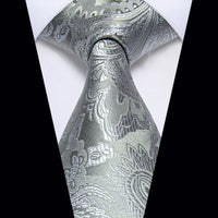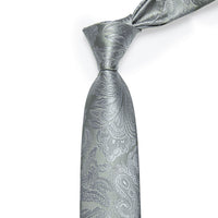 YourTies Wedding Tie for Men Grey Paisley Silk Necktie