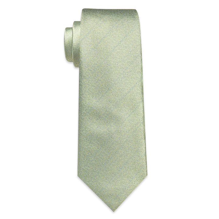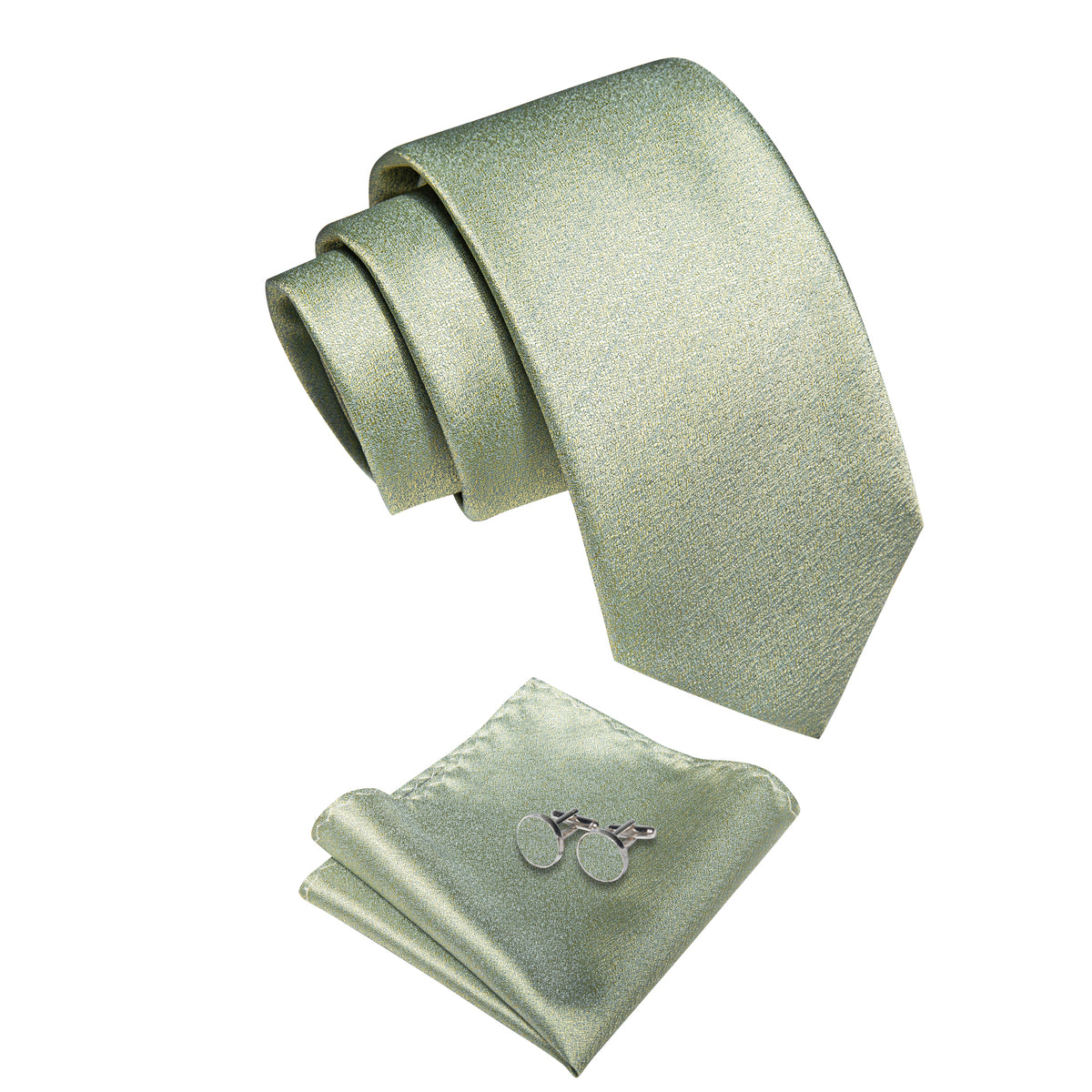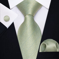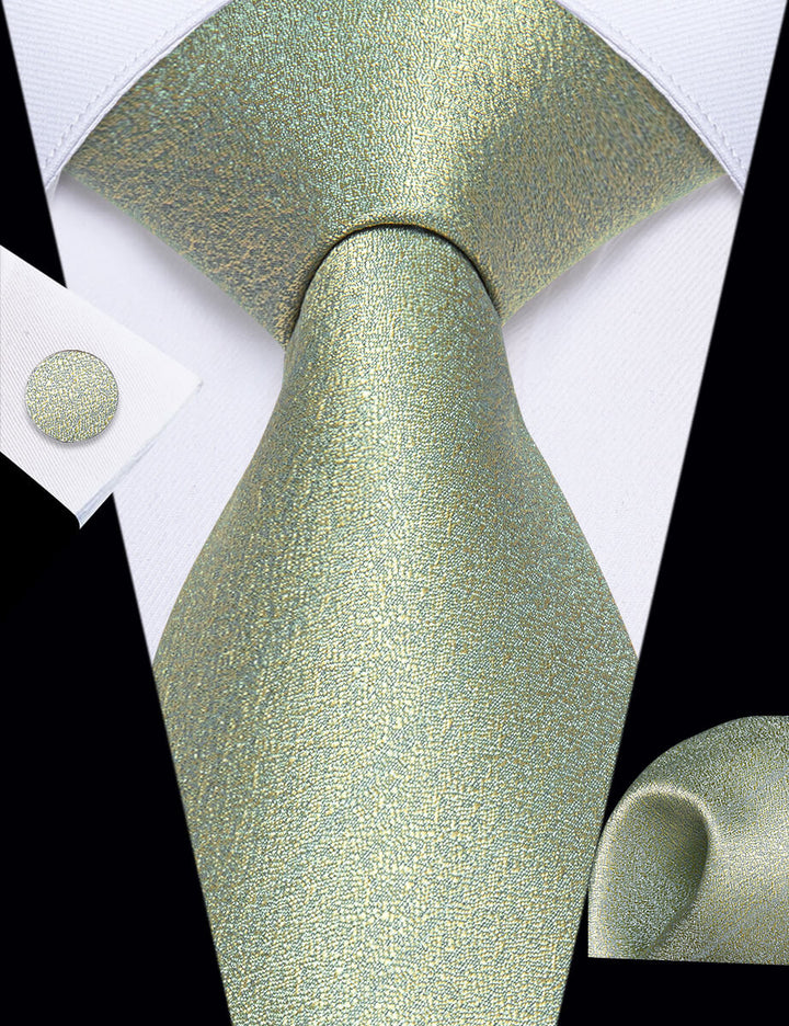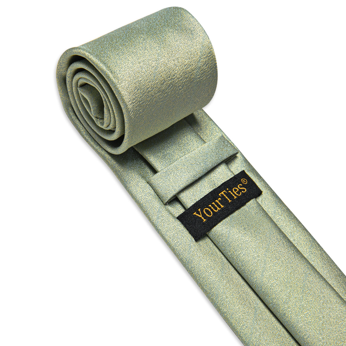 YourTies Shining Light Avocado Green Yellow Solid Necktie Hanky Cufflinks Set