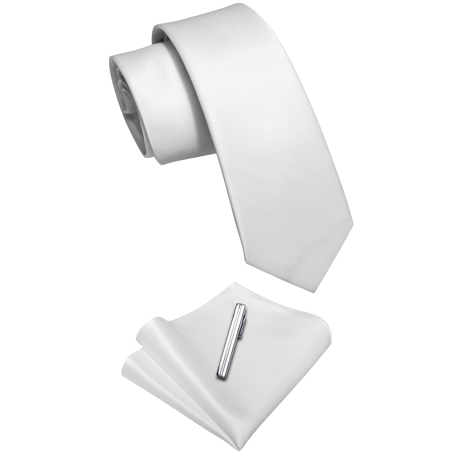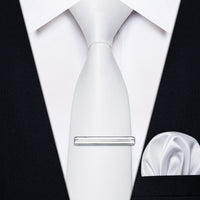 YourTies White Solid Skinny Necktie Pocket Square Set with Tie Clip