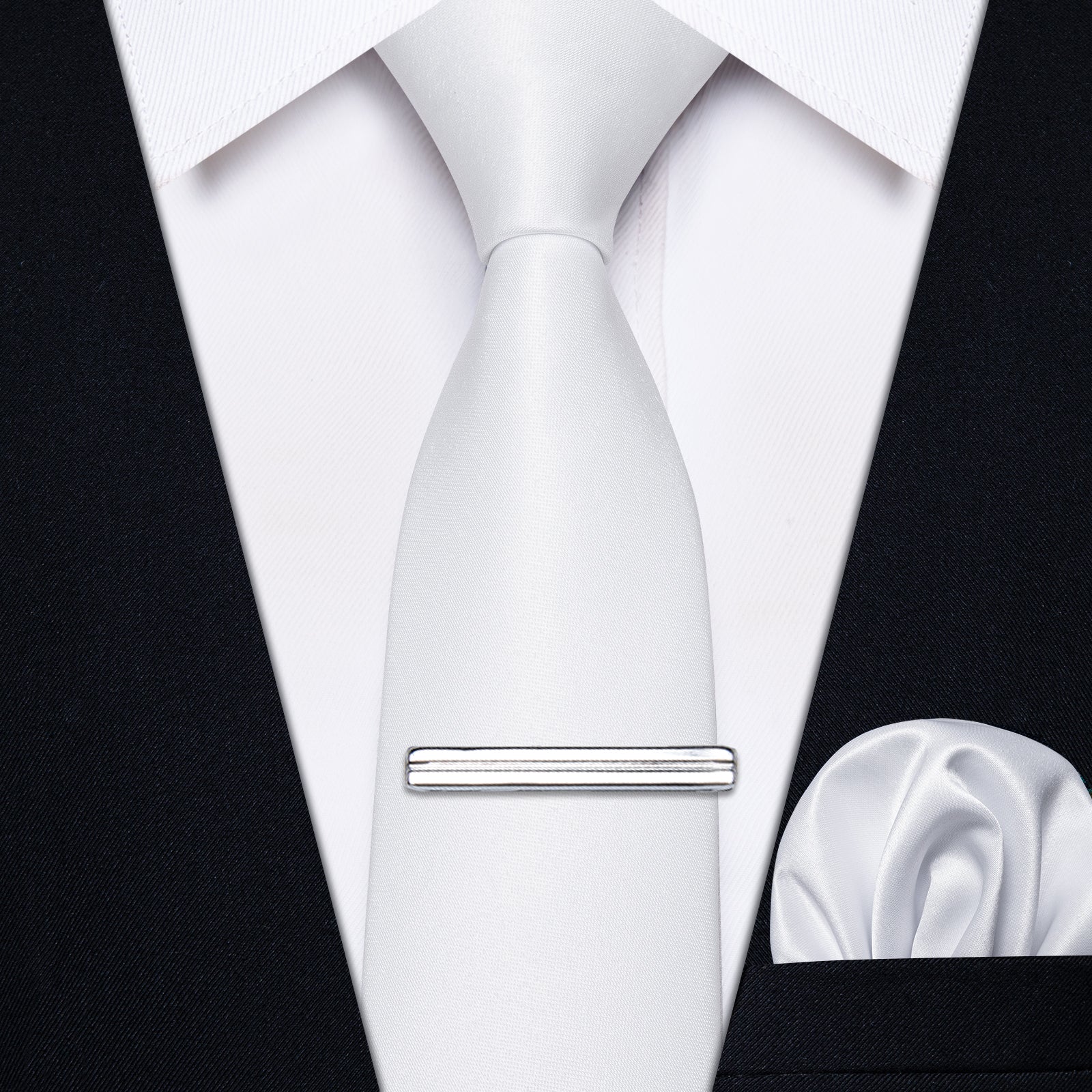 - Men's Necktie: Solid Skinny Tie * 1 + Pocket Square * 1 + Tie Clip * 1, Which is packed in a beautiful black gift box. Fashion slim tie can make you more unique and eye-catching