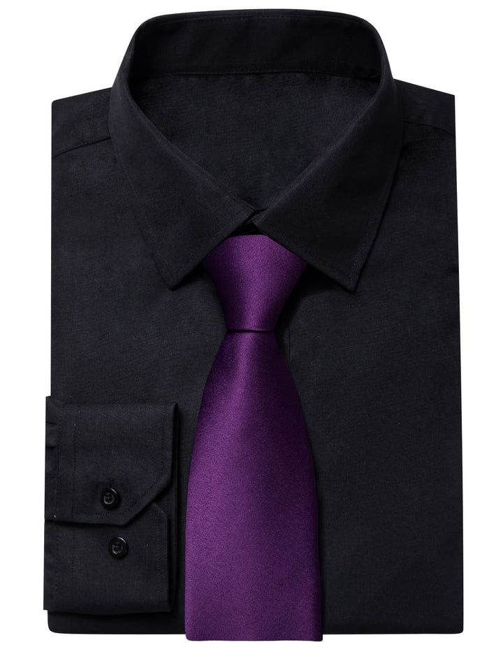 YourTies Black Solid Long Sleeve Shirt with Deep Purple Solid Silk Tie for Men