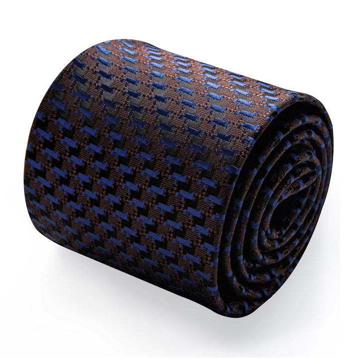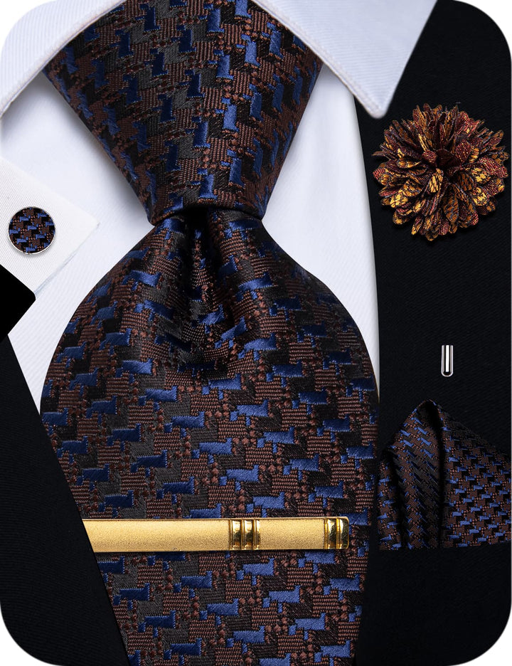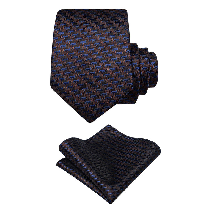 Brown Tie Dark Blue Novelty Jacquard Tie Hanky Cufflinks Set