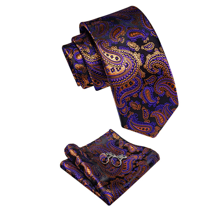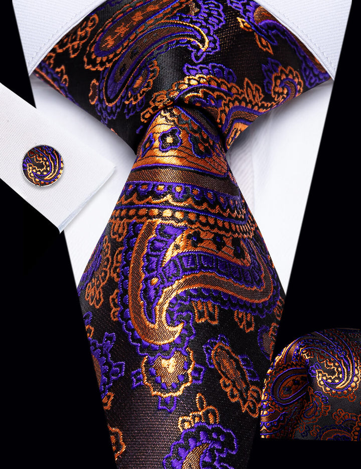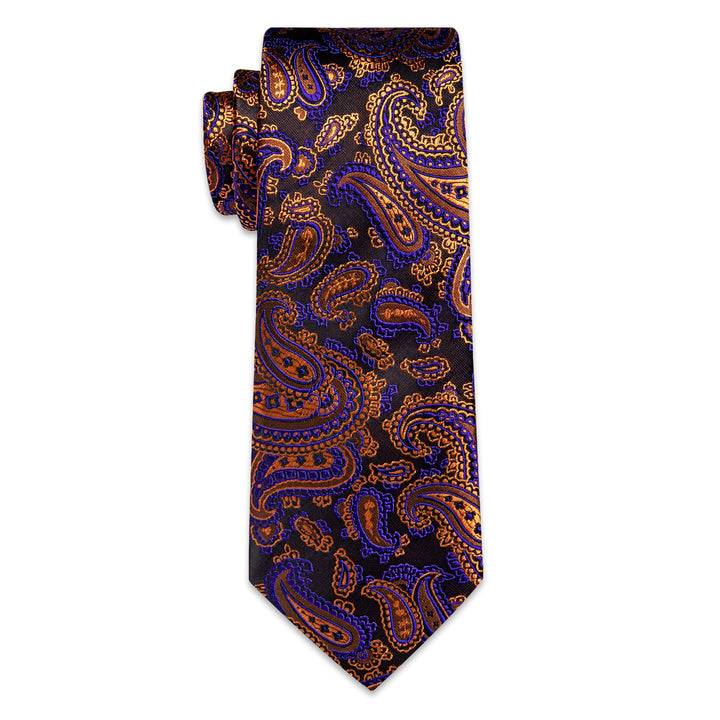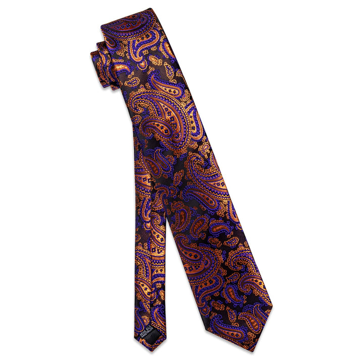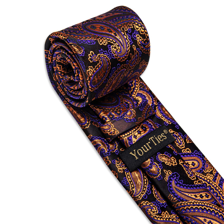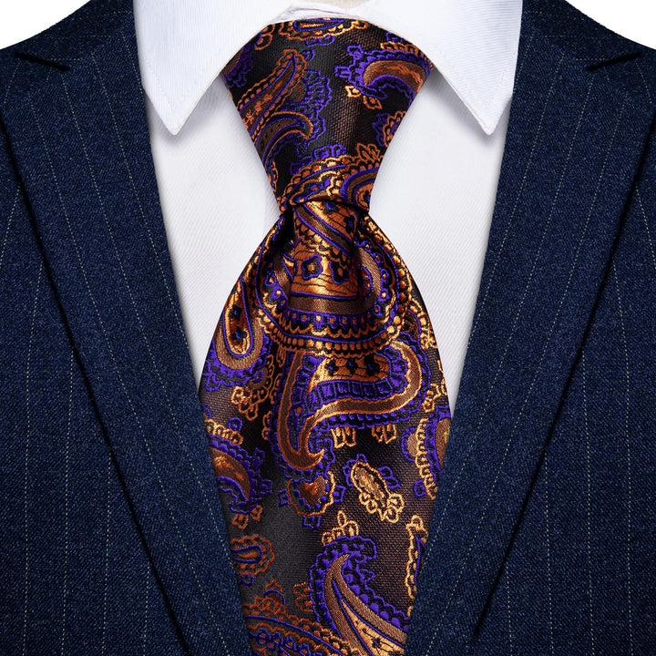 YourTies Brown Tie Orange Purple Paisley Men's Tie Hanky Cufflinks Set