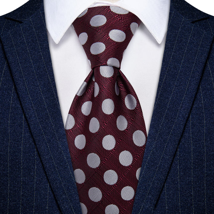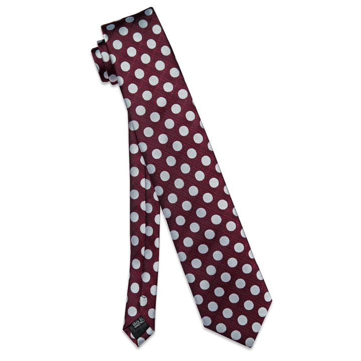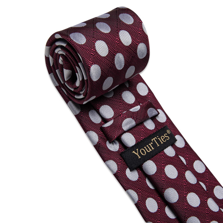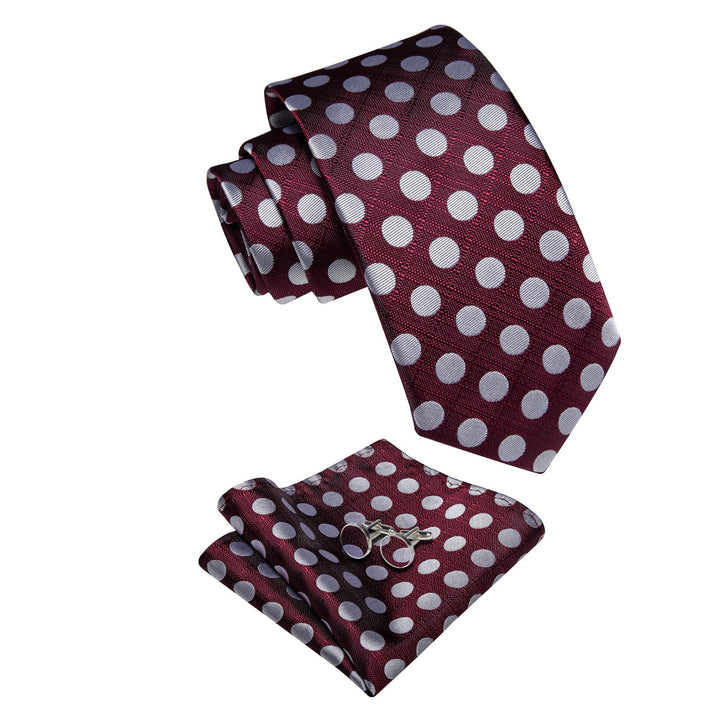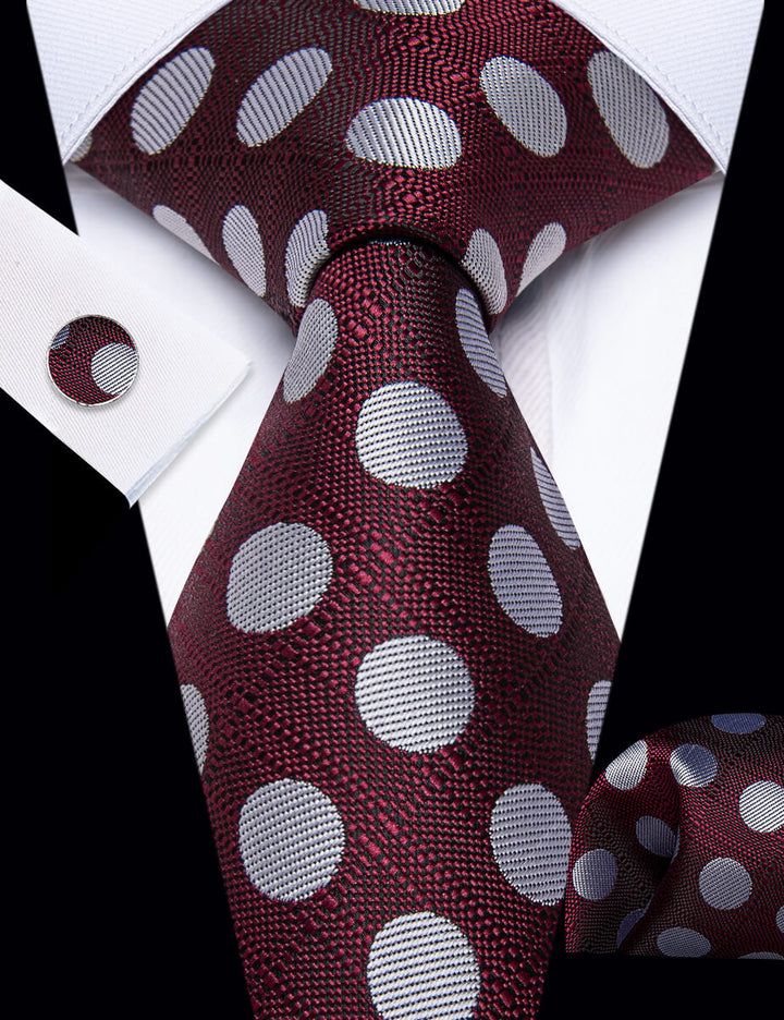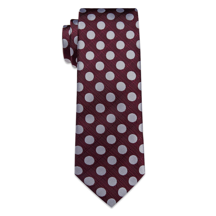 YourTies Burgundy Tie Silver Dots Mens Tie Pocket Square Cufflinks Set