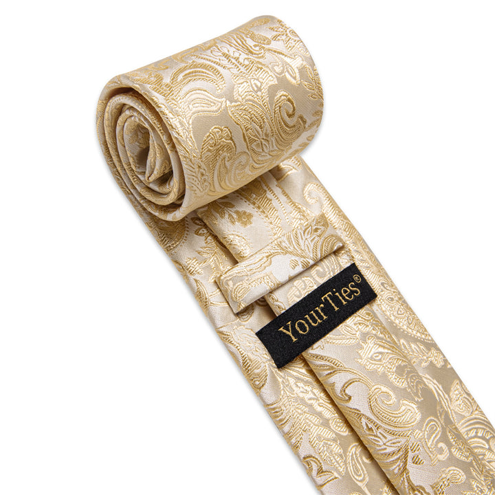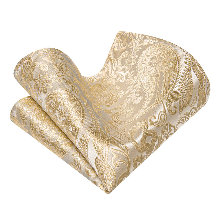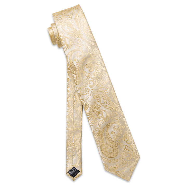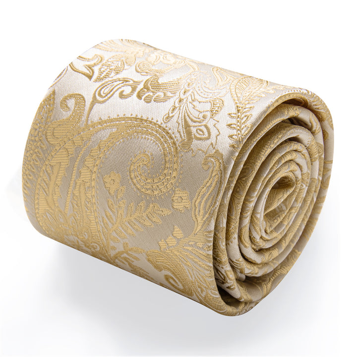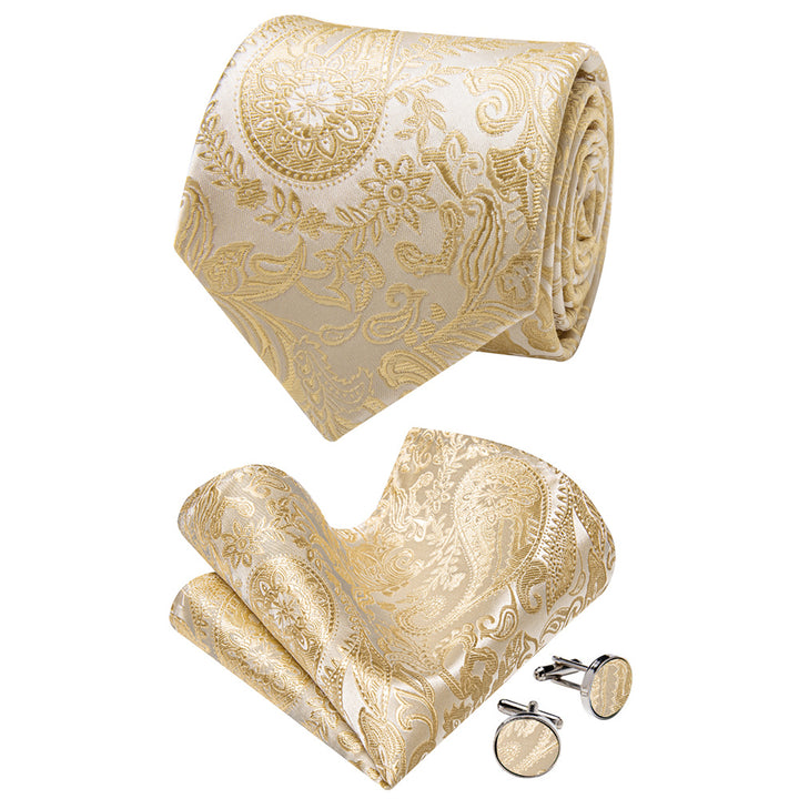 Blanched Almond Necktie Paisley Mens Tie Hanky Cufflinks Set