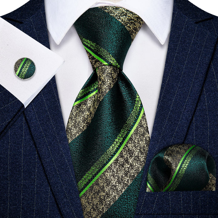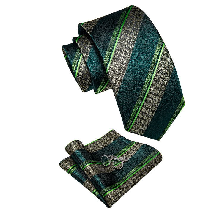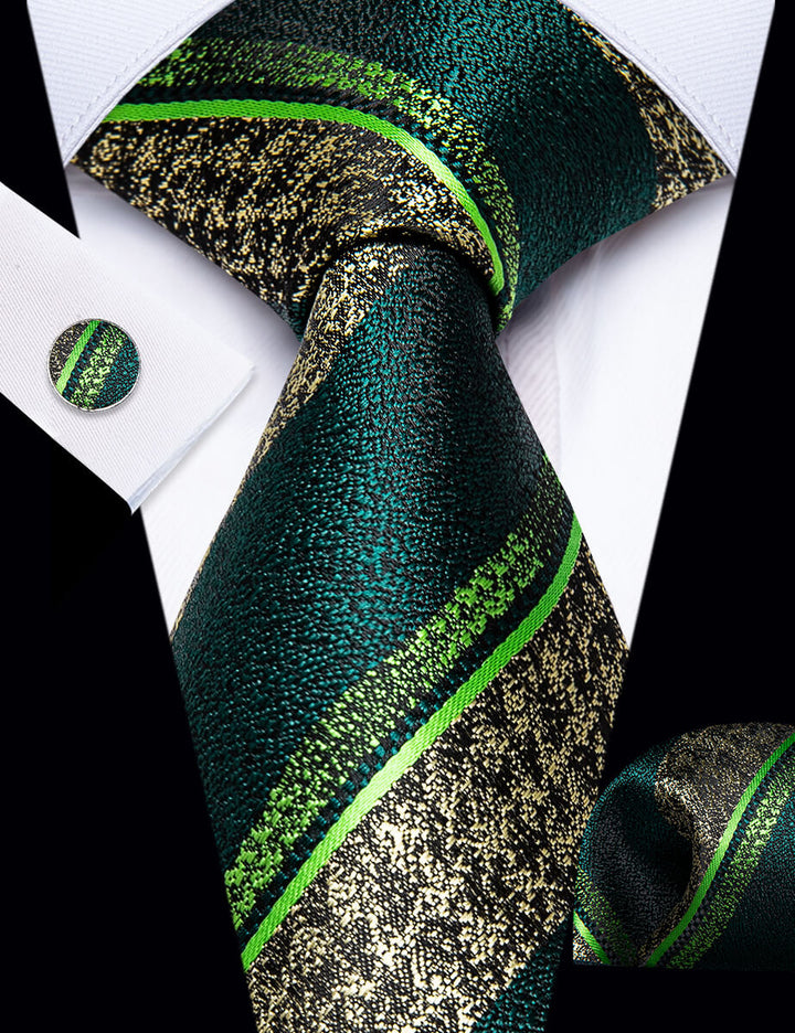 YourTies Dark Green Necktie Men's Wedding Necktie Hanky Cufflinks Set