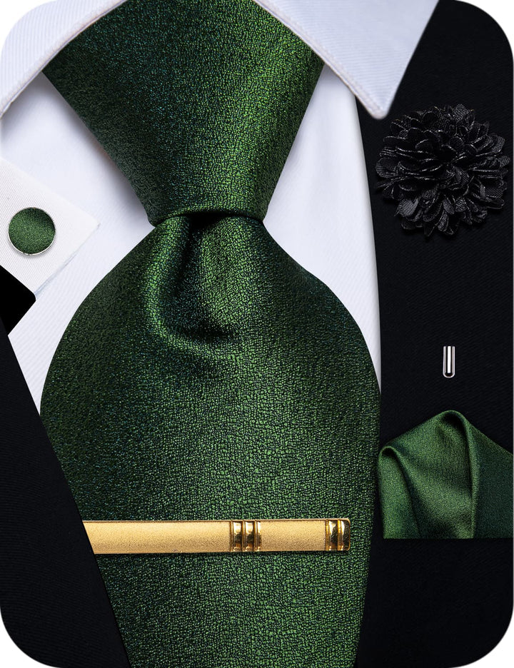 Green Tie OliveDrab Solid Men's Wedding Necktie Set