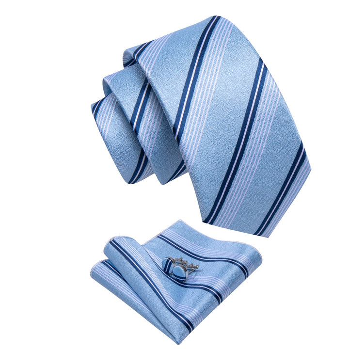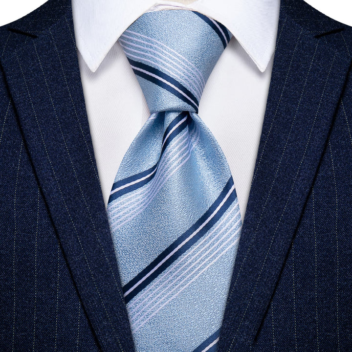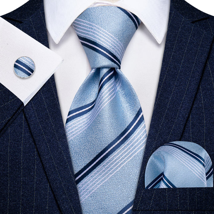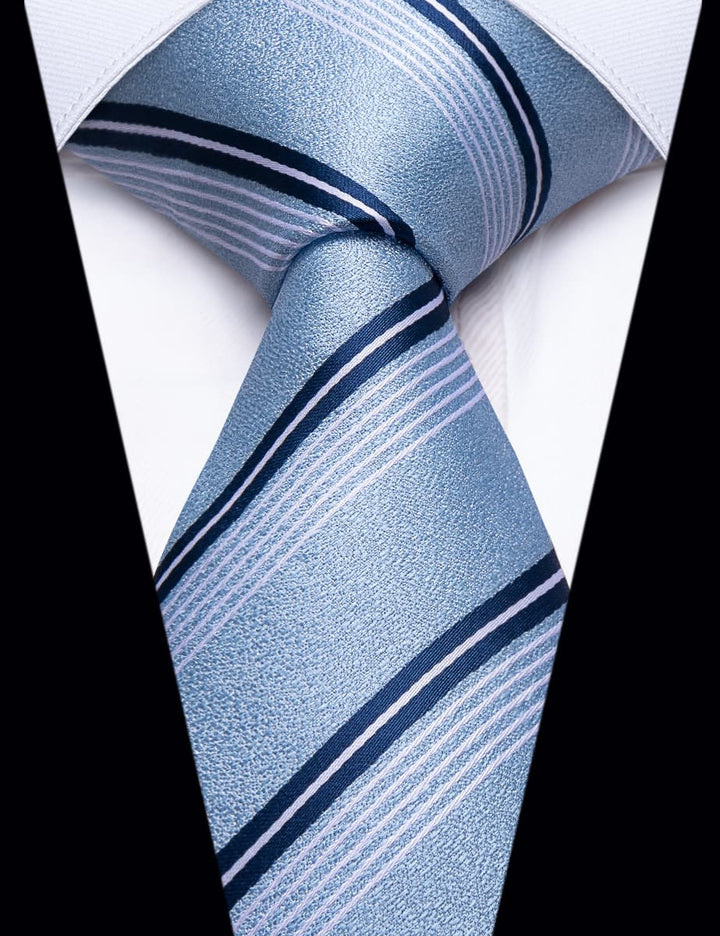YourTies Light Blue Striped Silk Mens Dress Necktie Set