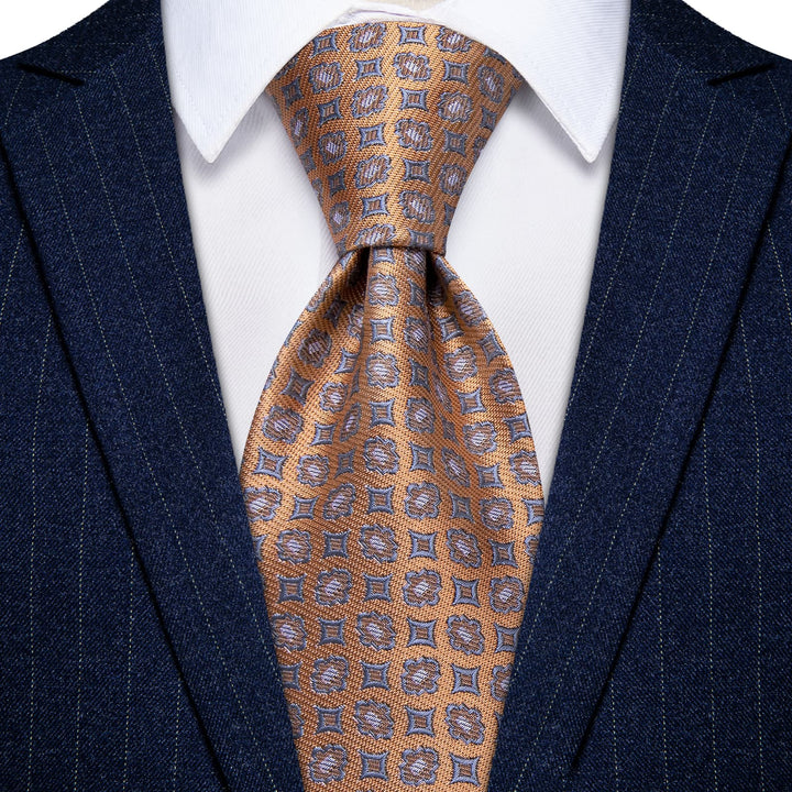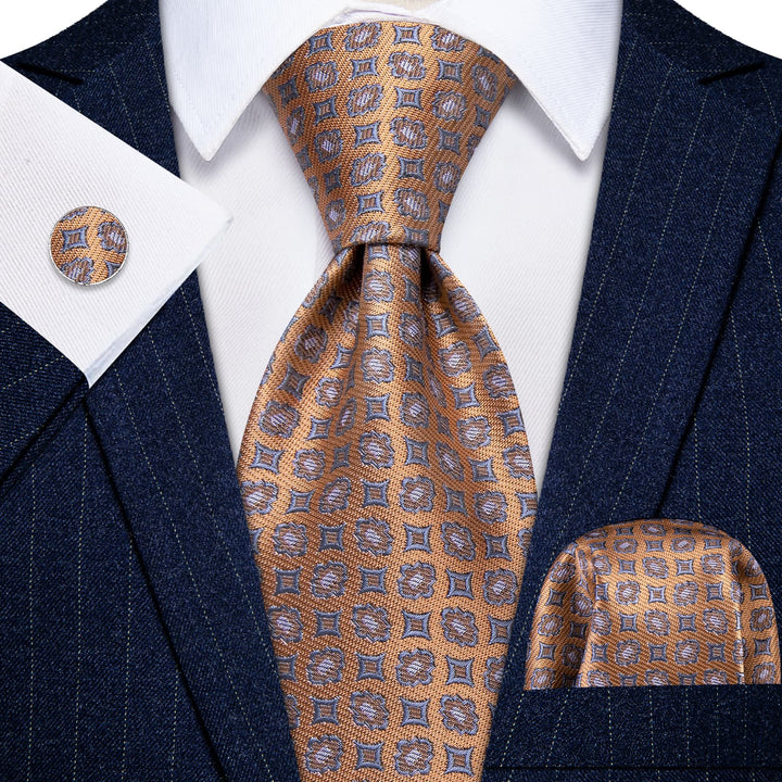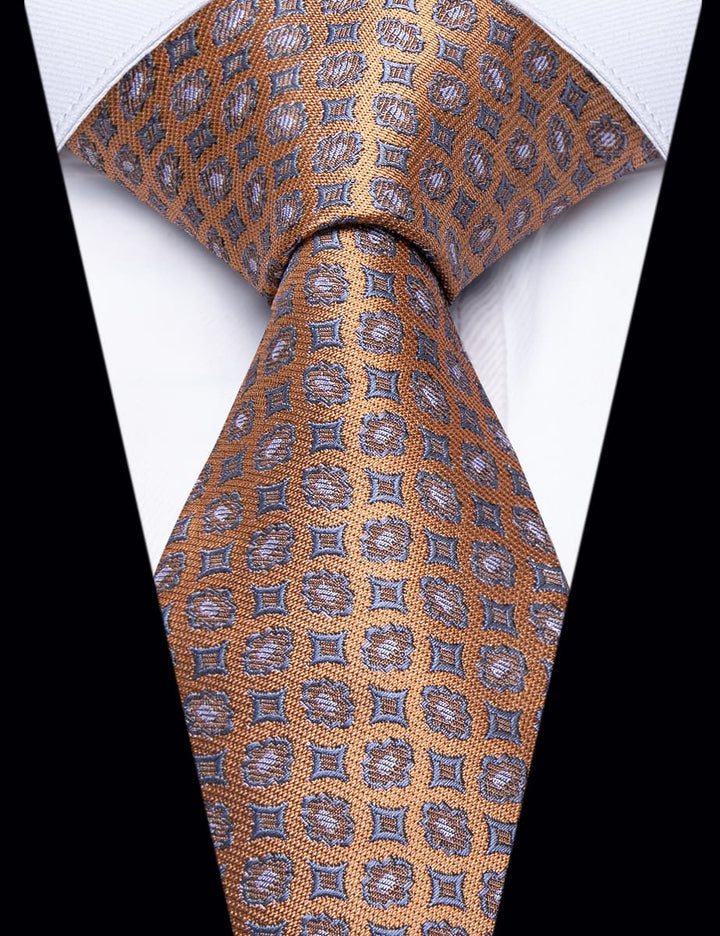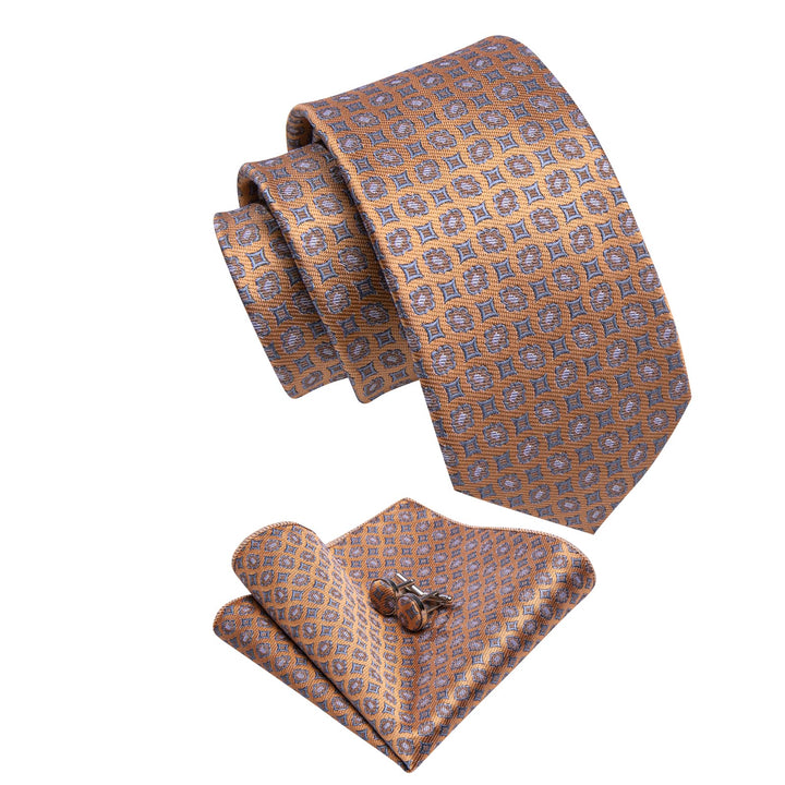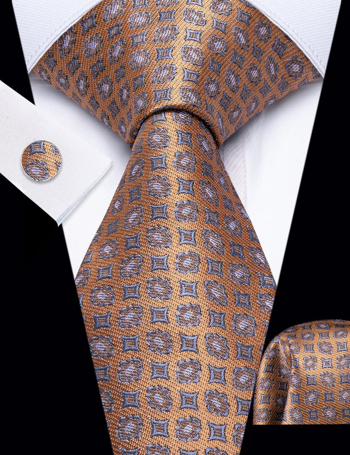 YourTies Light Brown Geometric Pattern Silk Mens Necktie Set