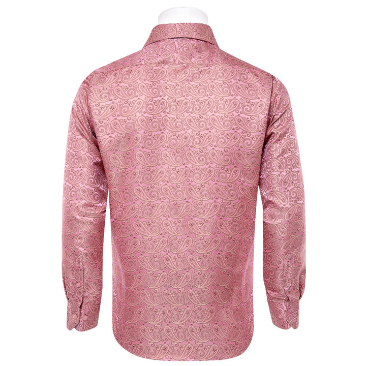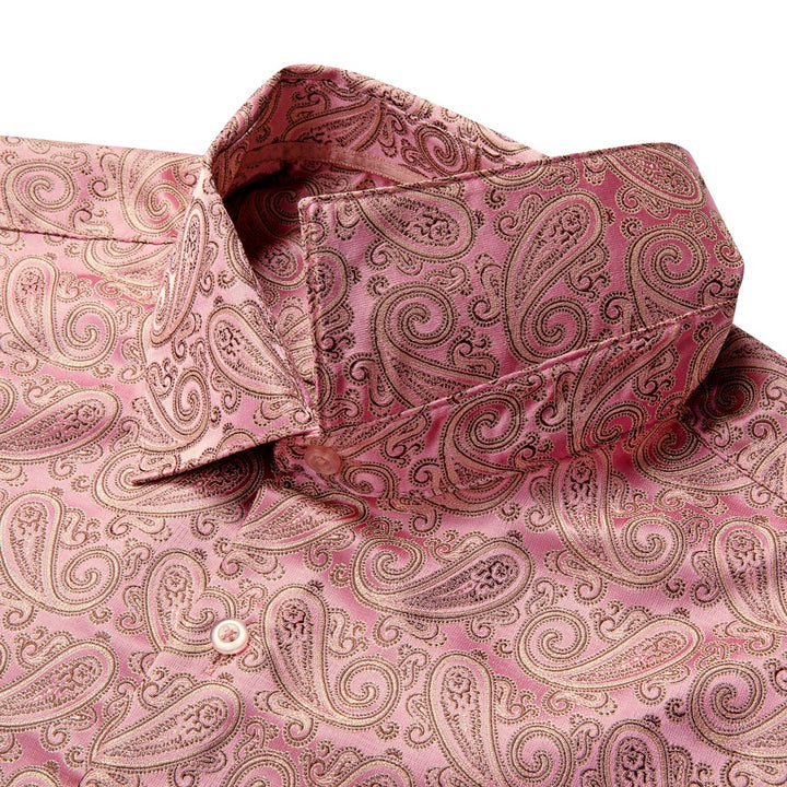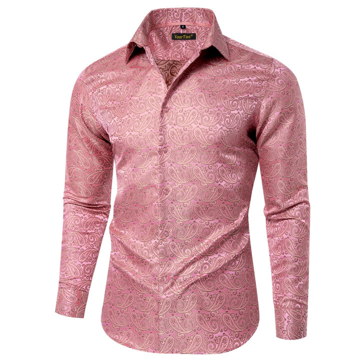 YourTies Men's Pink Shirt Silk Yellow Paisley Jacquard Shirt