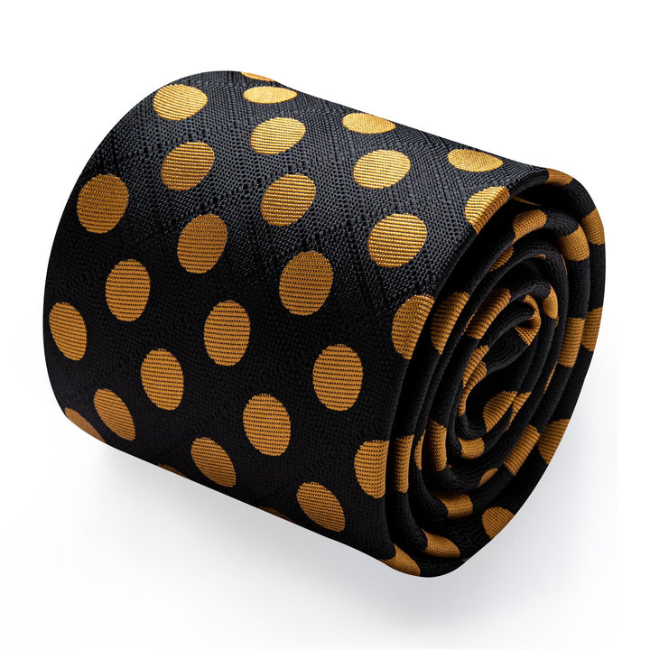 YourTies Men's Tie Black Gold Polka Dots Necktie Brooch Clip Set