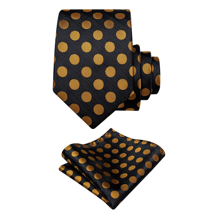 Black Tie Gold Dots Men's Necktie Pocket Square Cufflinks Set