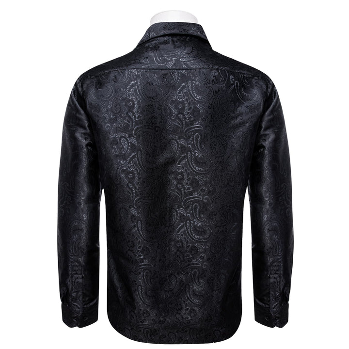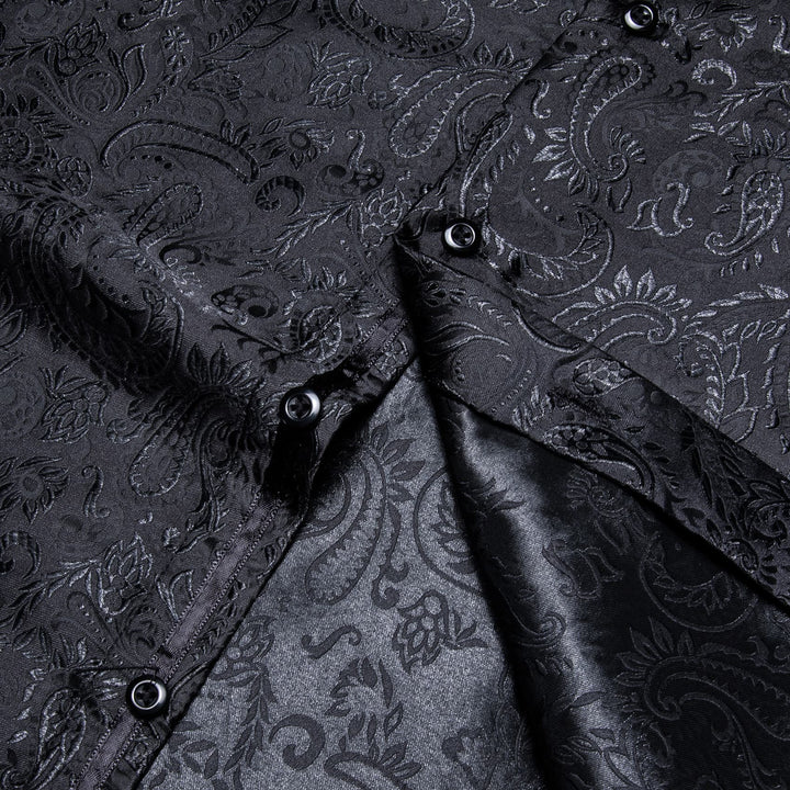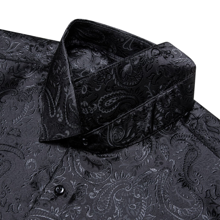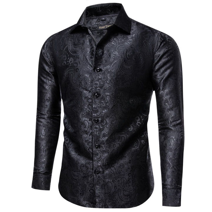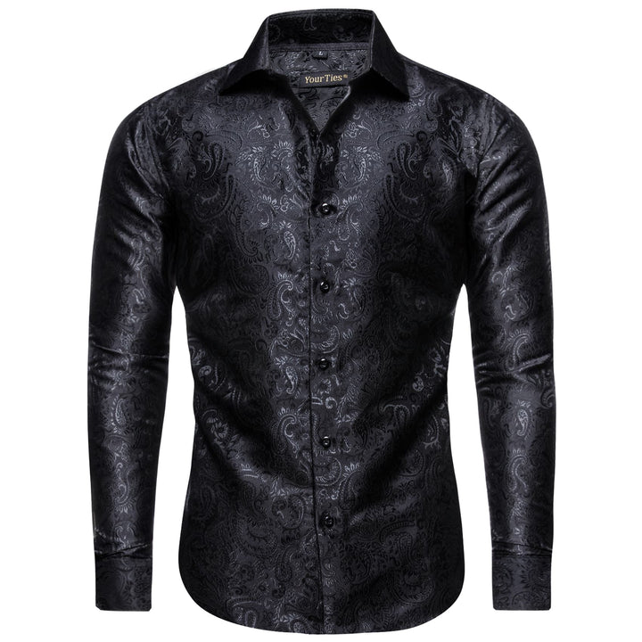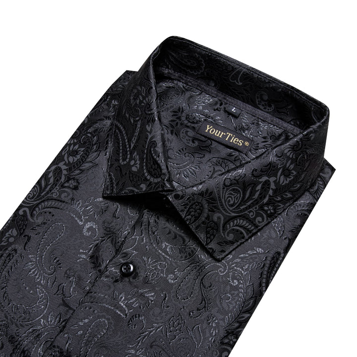 YourTies Windsor Collar Men's Dress Shirt Black Paisley Jacquard Top